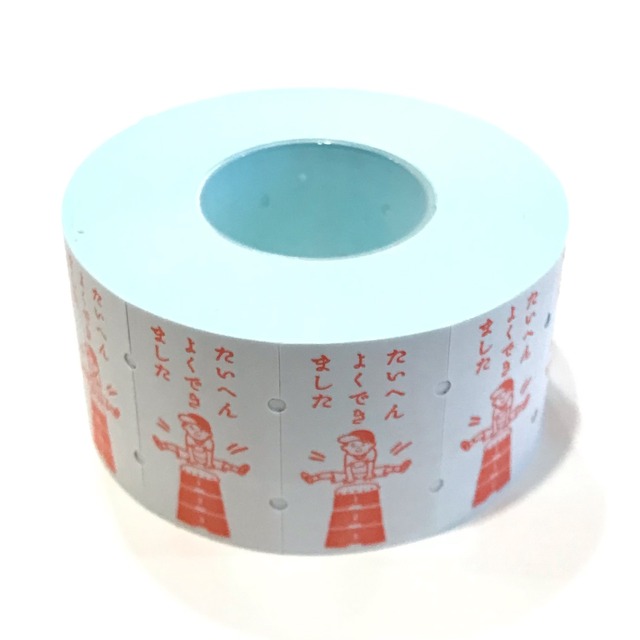 家庭や学校、塾で活躍しそうな「たいへんよくできました」のラベラーロールシールです☆ 跳び箱が成功した男の子のイラスト入り。 たっぷり800枚綴りなので、ラッピング、お手紙、手帳デコレーションに惜しみなくつかってくださいね。 ※こちらの商品はインクのかすれ、印刷のずれ、色味の個体差 テープ巻きのずれ、折れ、カットのずれなどが見られることがございます。 また、紙のつなぎ目には、剥離紙側にテープがついたものもございます。 本来の用途(値段付け用シール)とは異なるため、全て良品とさせていただきます。 こちらでも検品をし、販売できると判断したもののみをお送りします。 ご理解いただいた上でのご注文をお願いいたします。 ロール直径約6.0cm シール1片 H3.0cm W1.8cm 800枚綴り(10枚ほど増減あり)