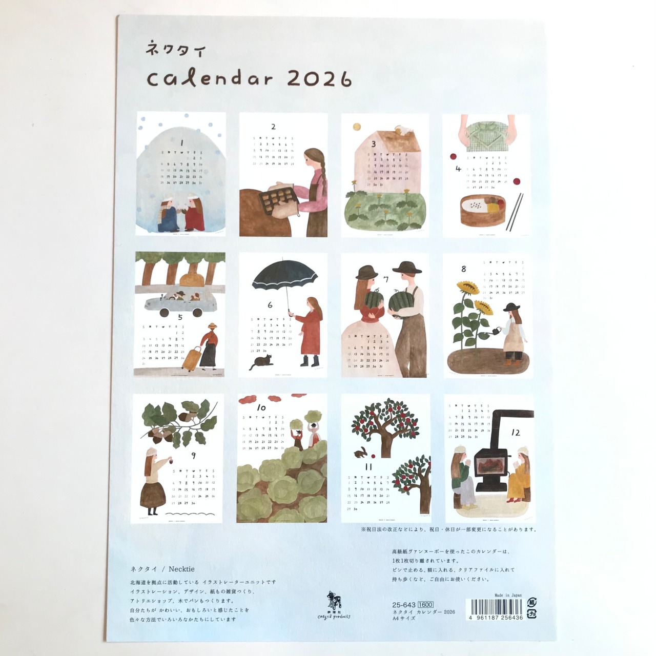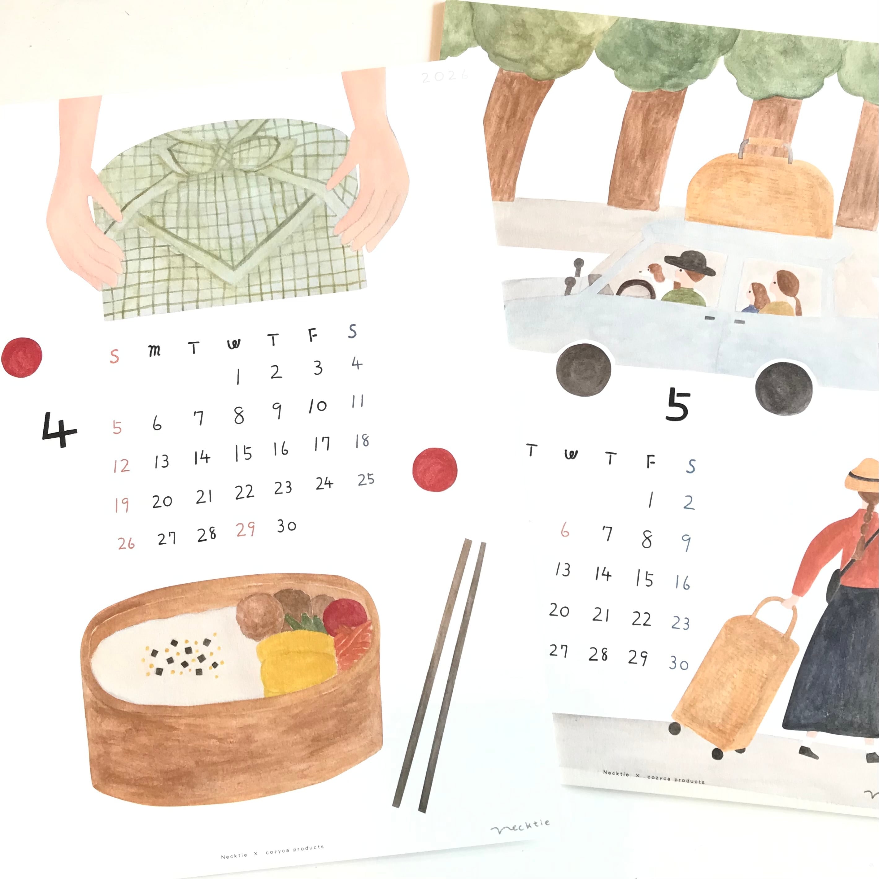 ほっこりあたたかいイラストレーターユニット・ネクタイの2026年カレンダーです☆
