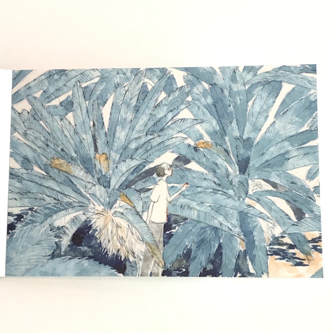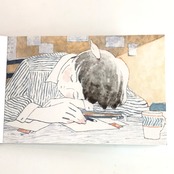 じわっとにじむ赤色や青色を使って、暮らしの中のいろんなシーンを描く、藤巻佐有梨のはがき箋です☆