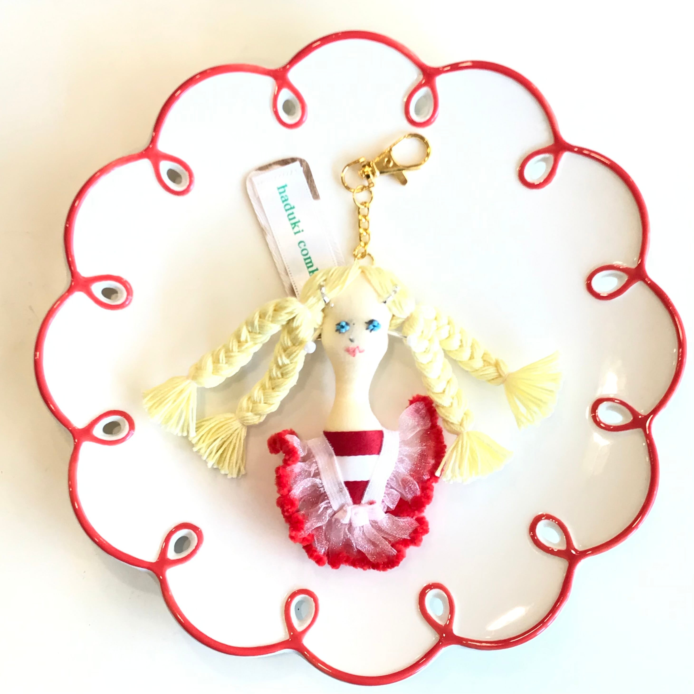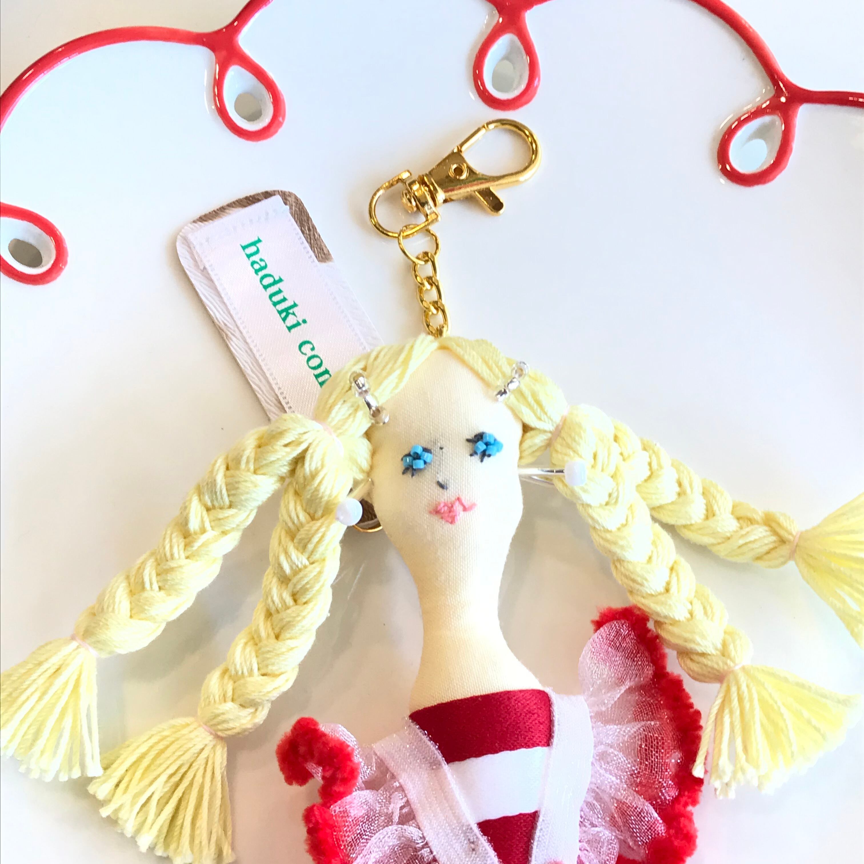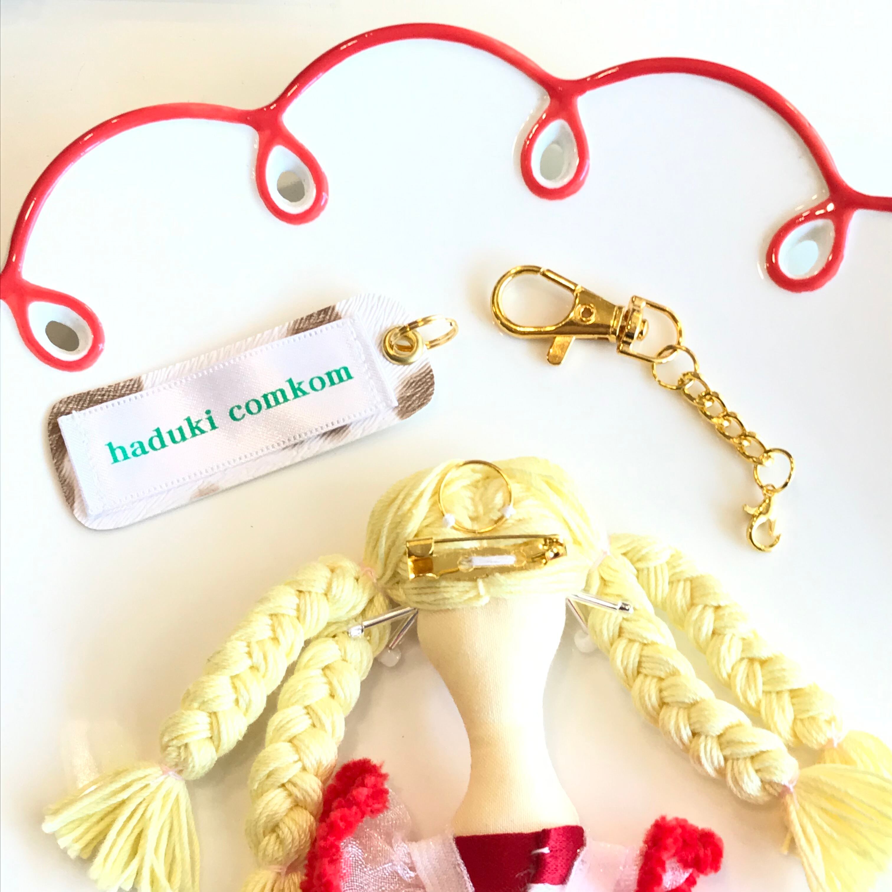 服のデザイナー経験を経て、ものづくりをされている haduki comkom"ハヅキ コムコム"の刺繍ドールのキーチェーン/ブローチの2wayチャームです☆