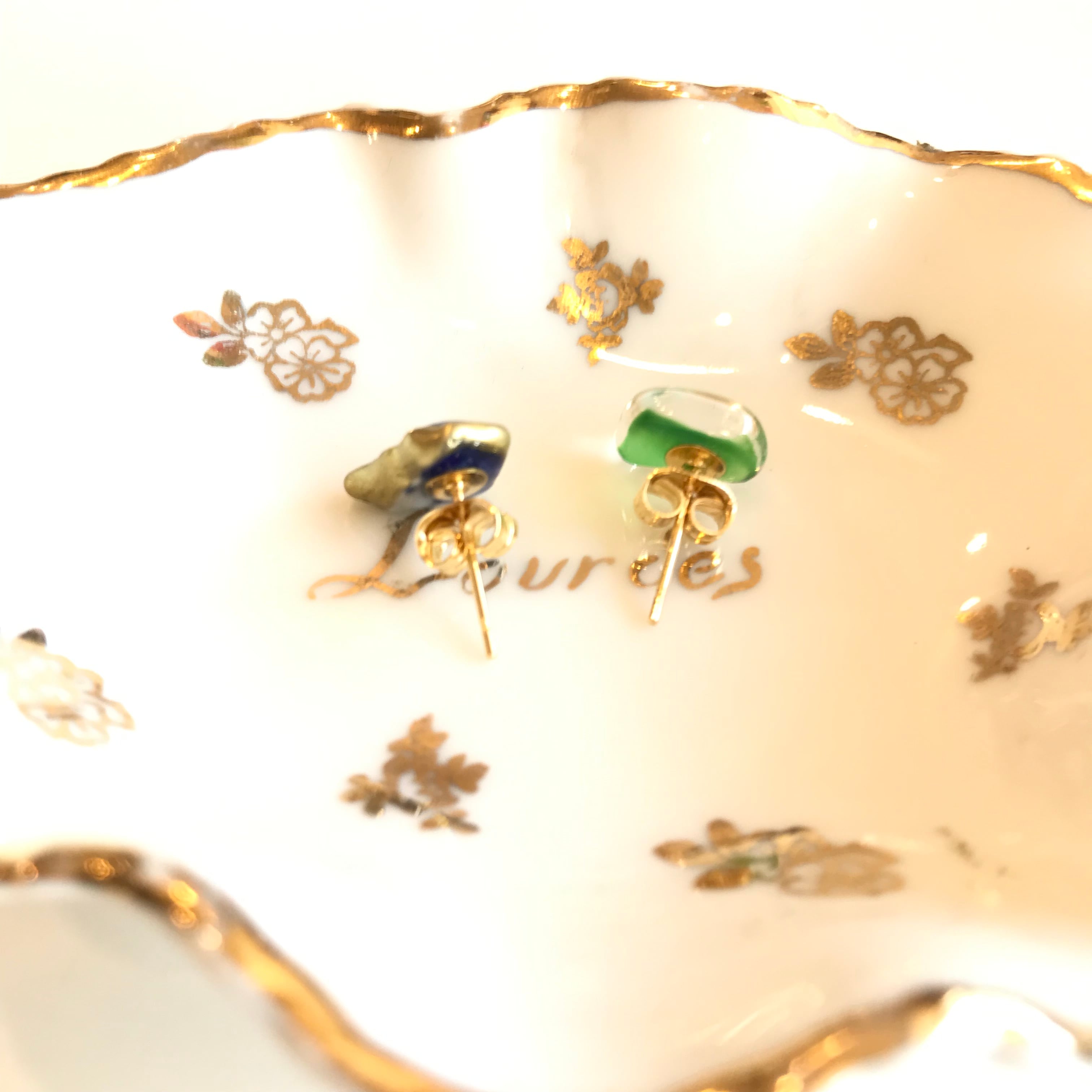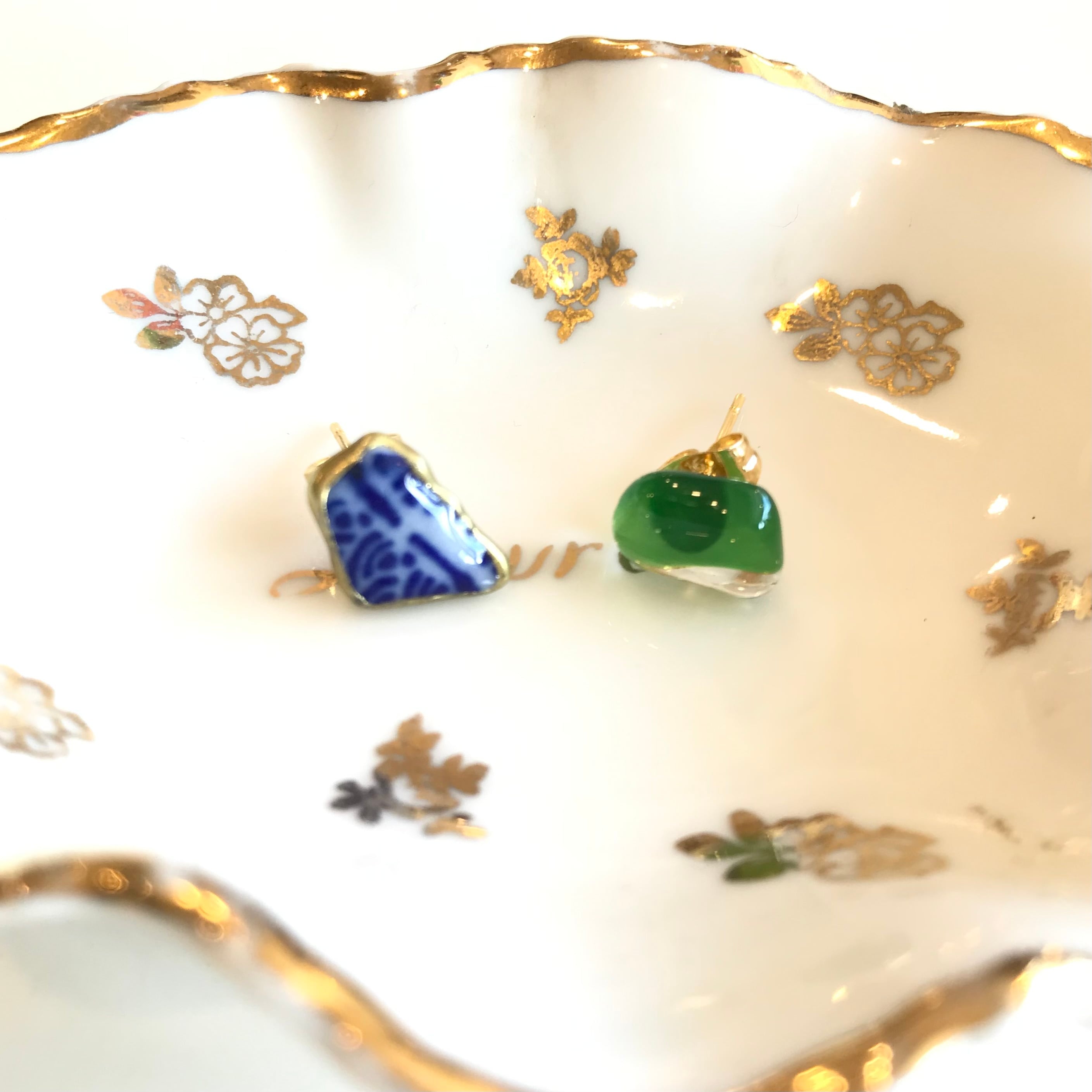 素材の形を生かしたアシメントリーなデザインが個性的ながらも上品なアクセサリーに仕立てられています。