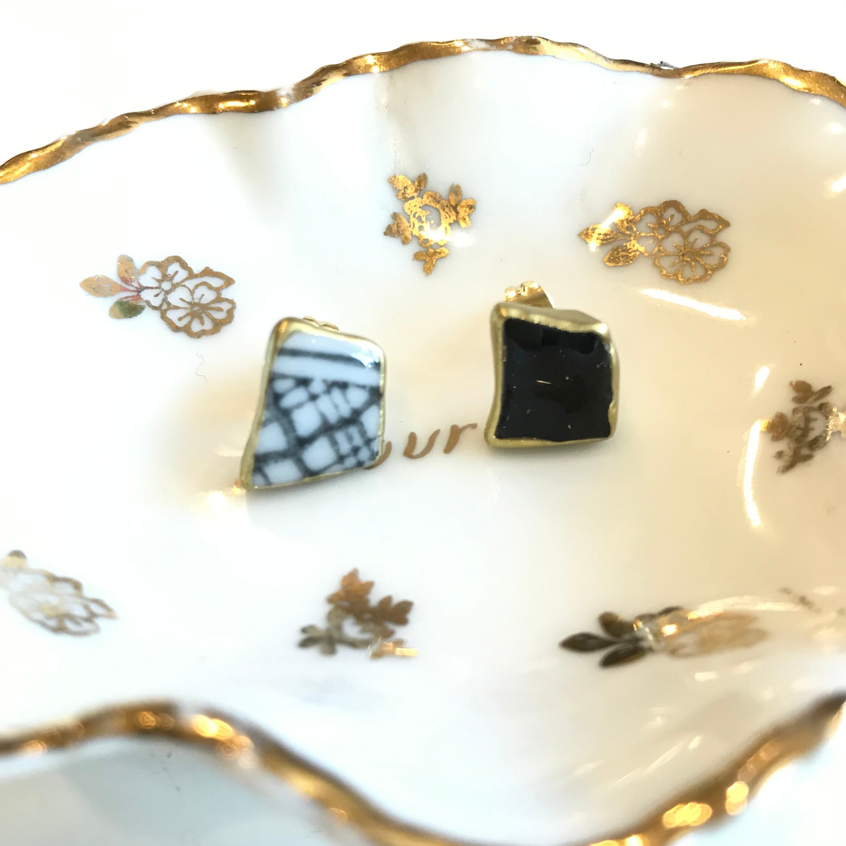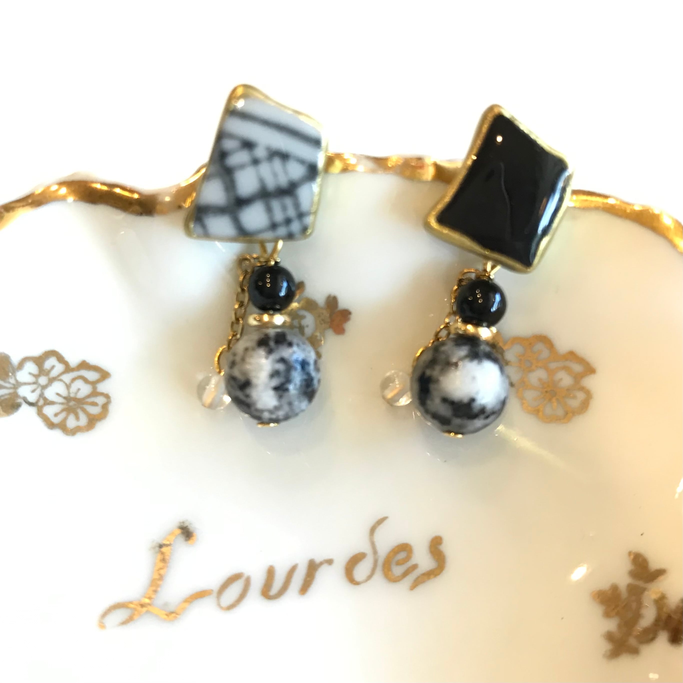 素材の形を生かしたアシメントリーなデザインが個性的ながらも上品なアクセサリーに仕立てられています。