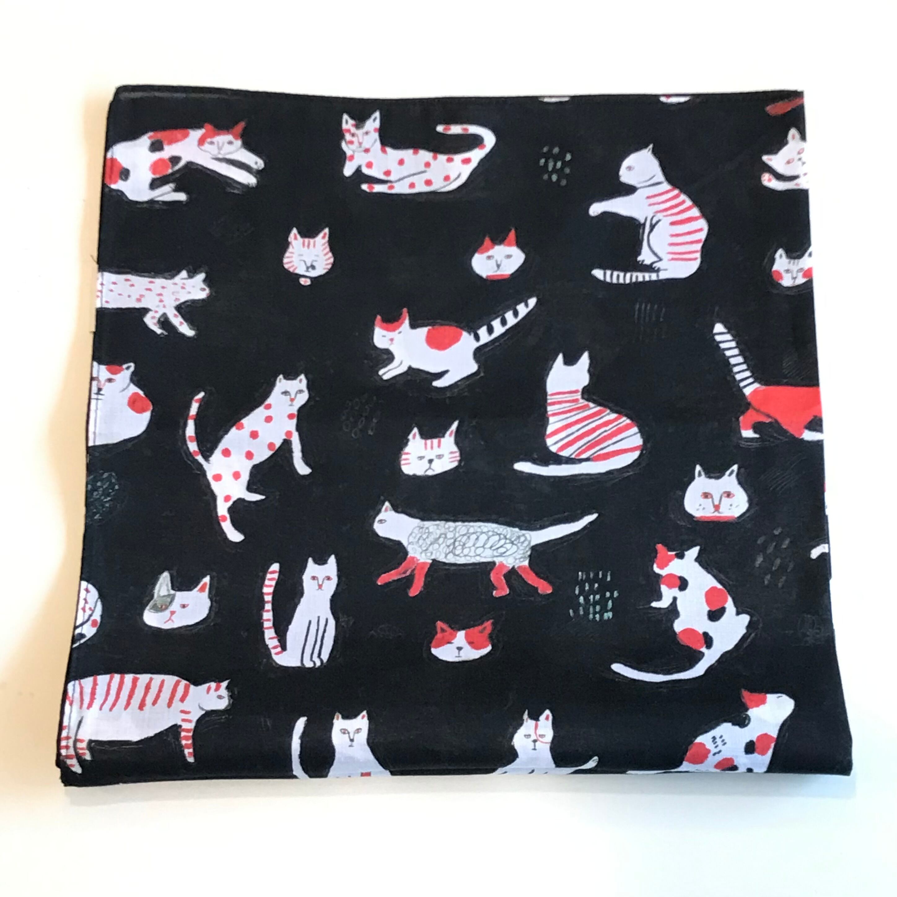 オリジナルテキスタイルに描いてくれたのは、愛嬌たっぷりの子猫。ビビットなピンクをさし色にすることで、甘すぎないデザインに仕上がっています。触り心地が柔らかい綿ローンを使ったハンカチになります。