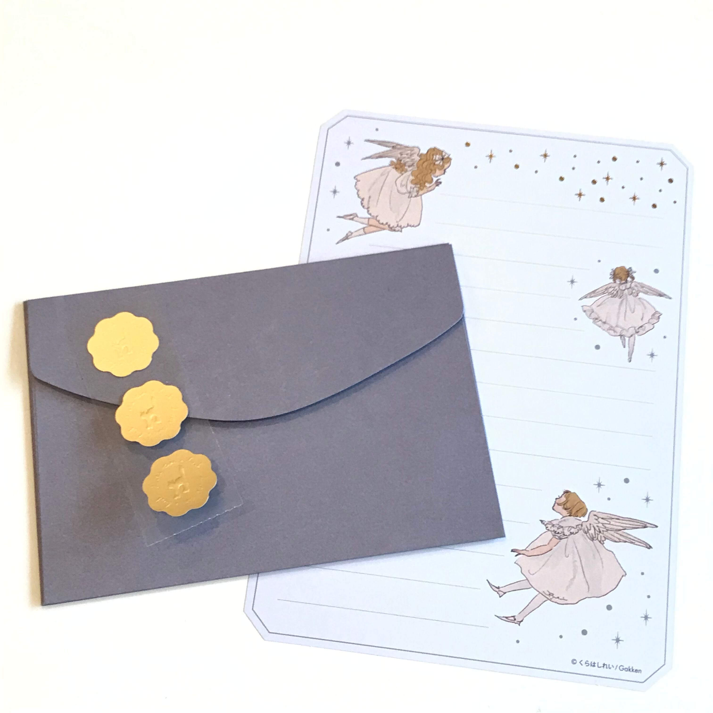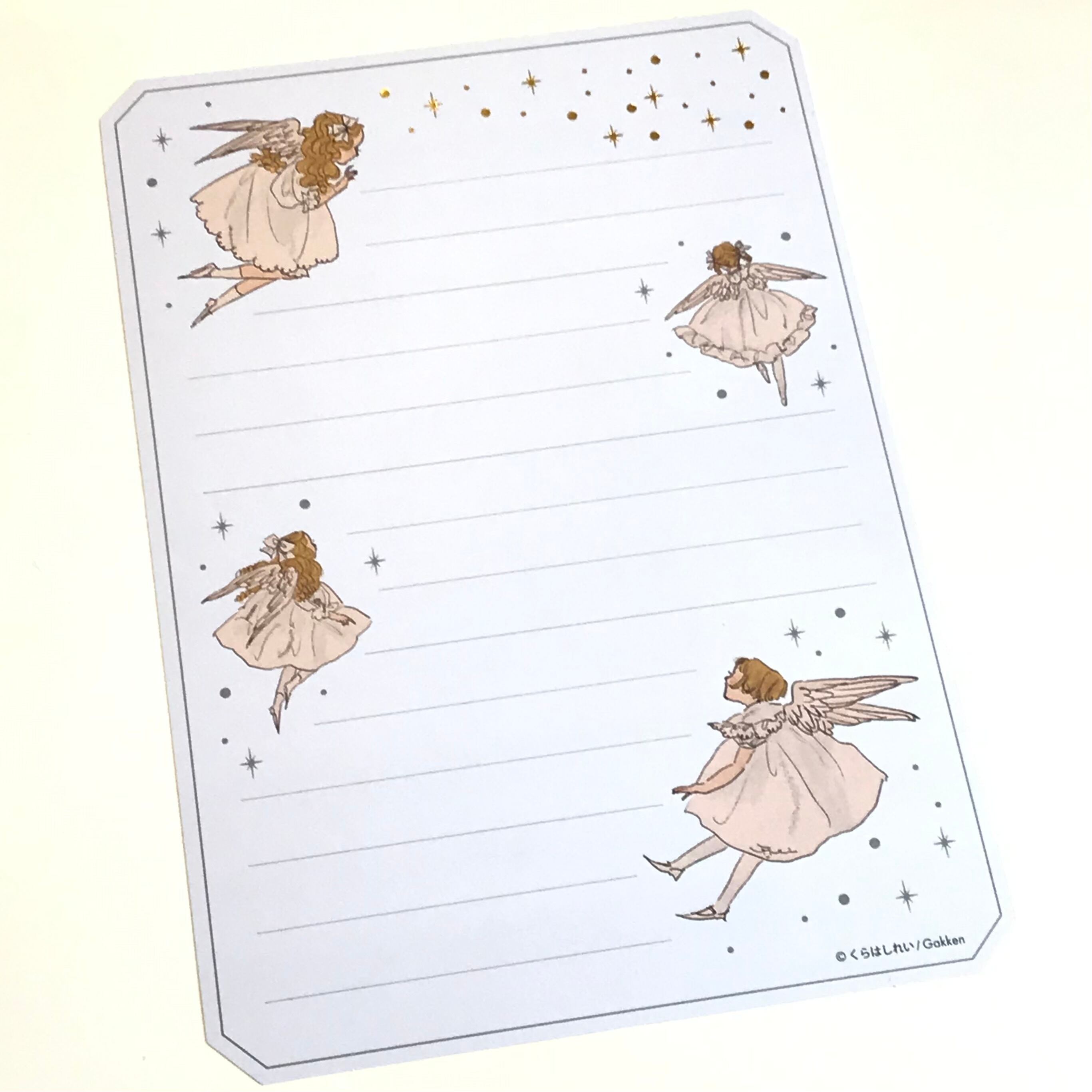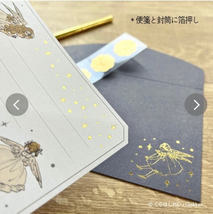 くらはしれいさんのアートと、星々の箔押しがきらめく上品なレターセットです☆