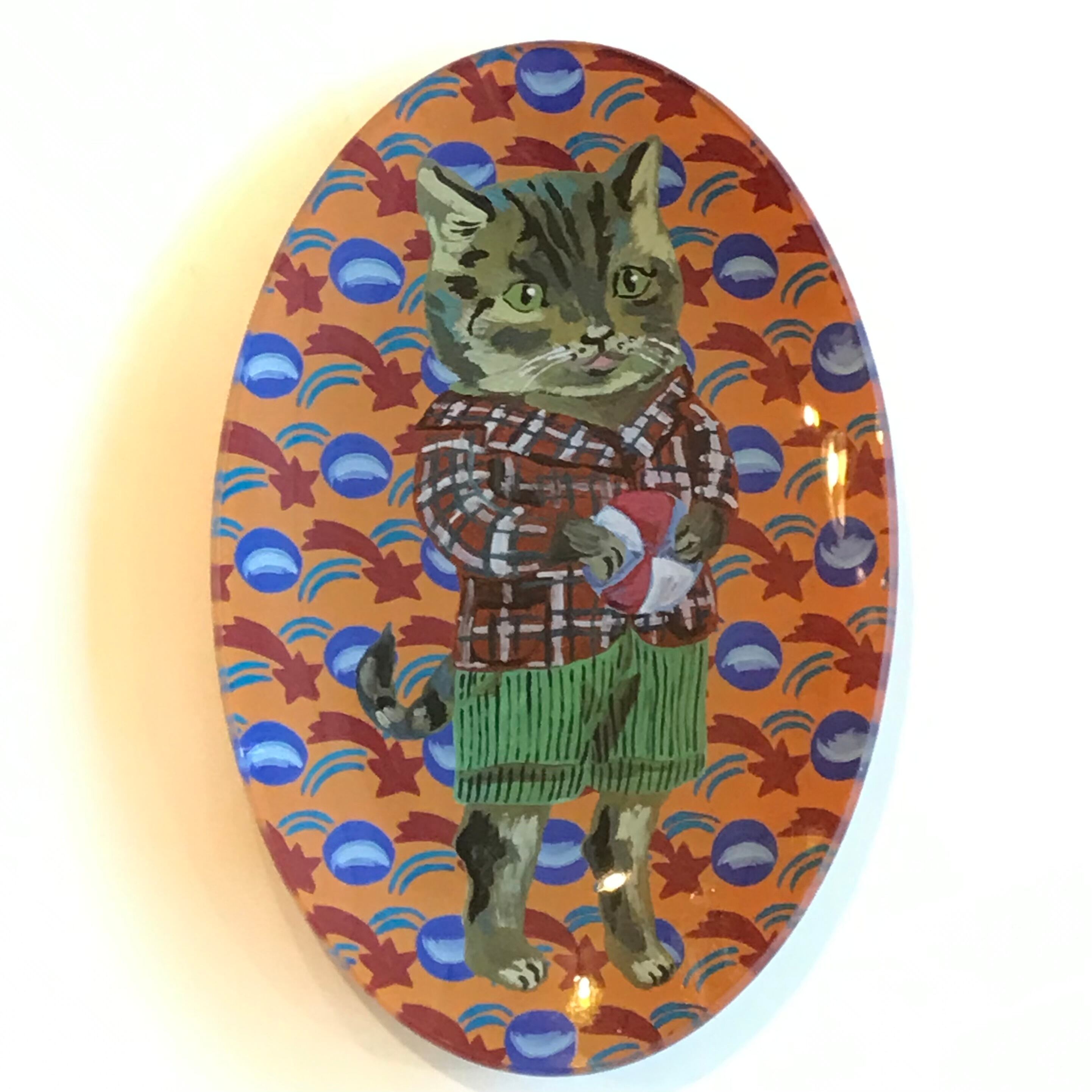 ナタリーレテ ガラスオーバルプレート Tabby cat