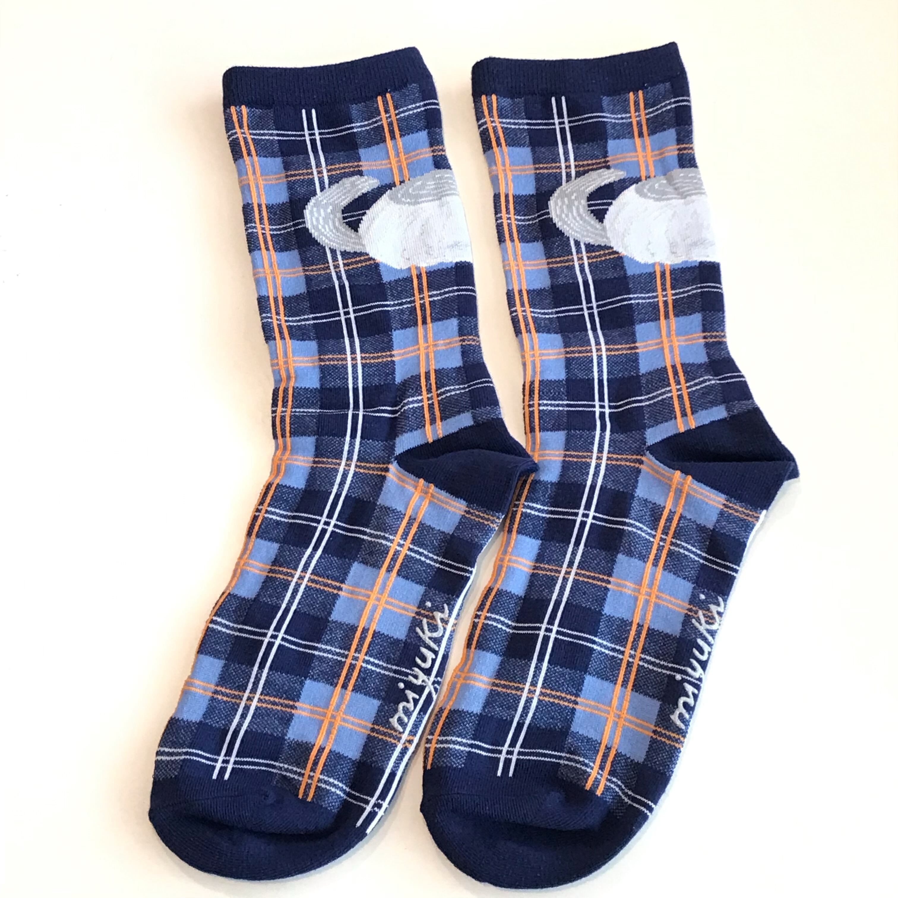 松尾ミユキさんのイラストを織り込んだ、やさしい履き心地のコットン靴下です☆