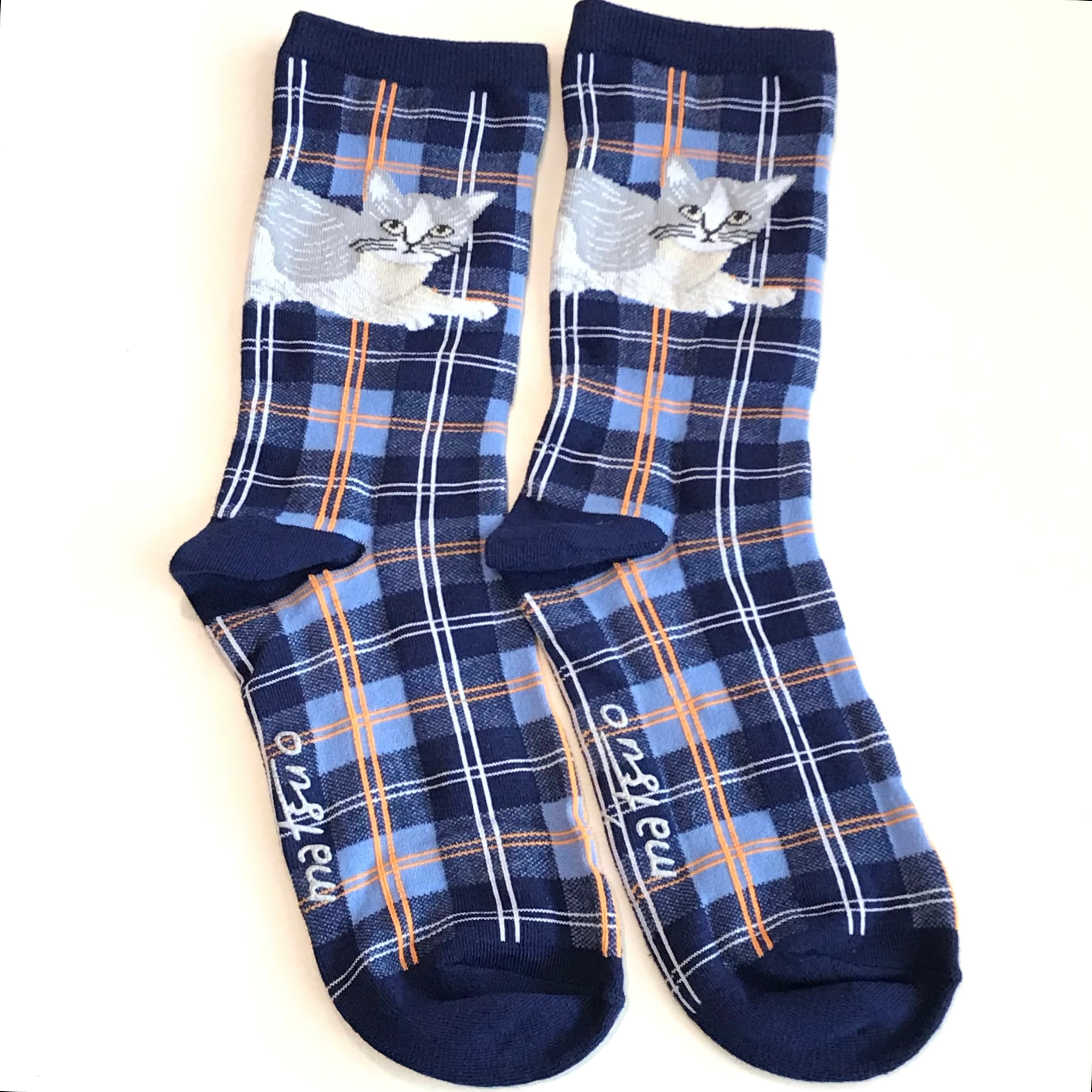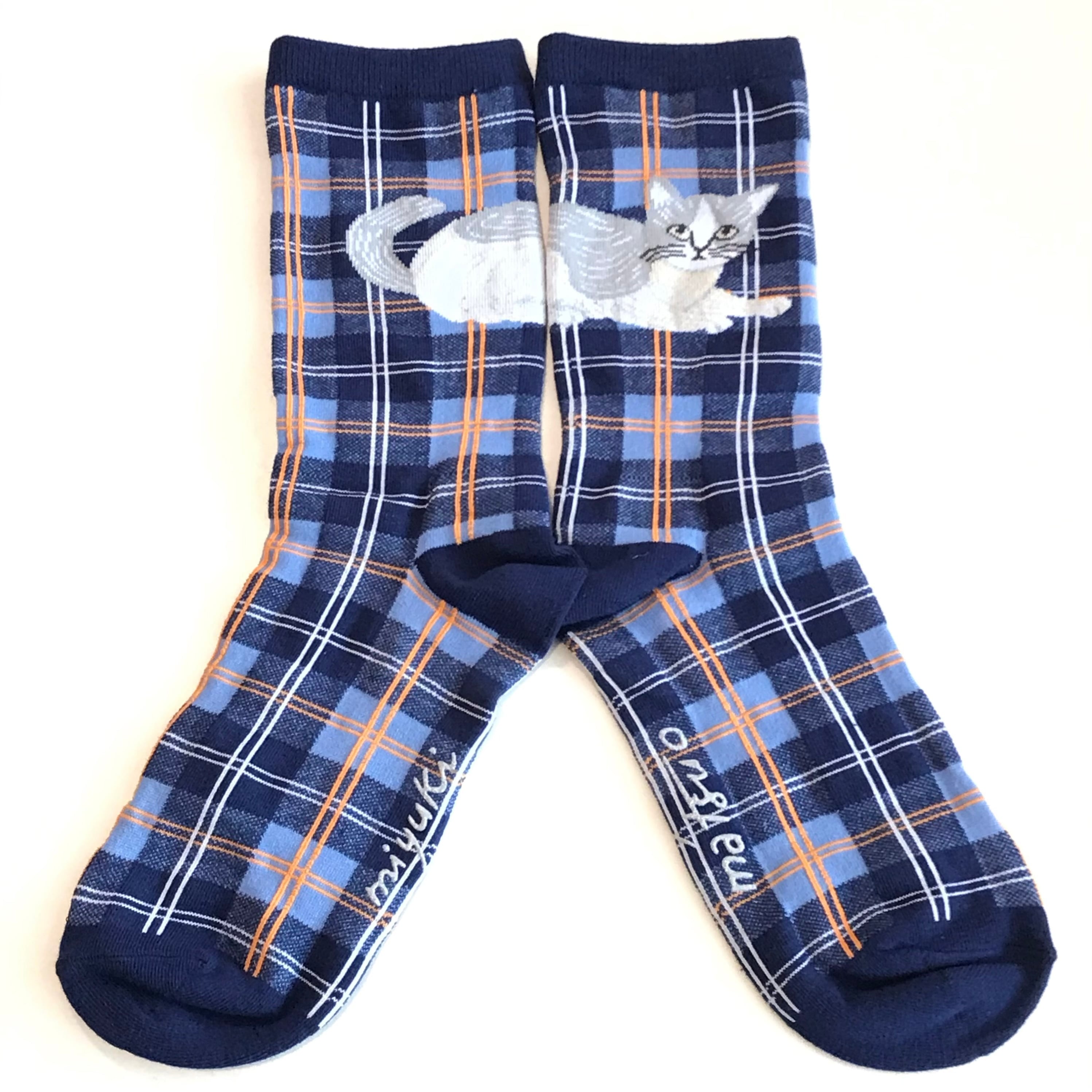 ネコたちが表情を添え、チェック柄とともに足元にアクセントを取り入れてくれます。