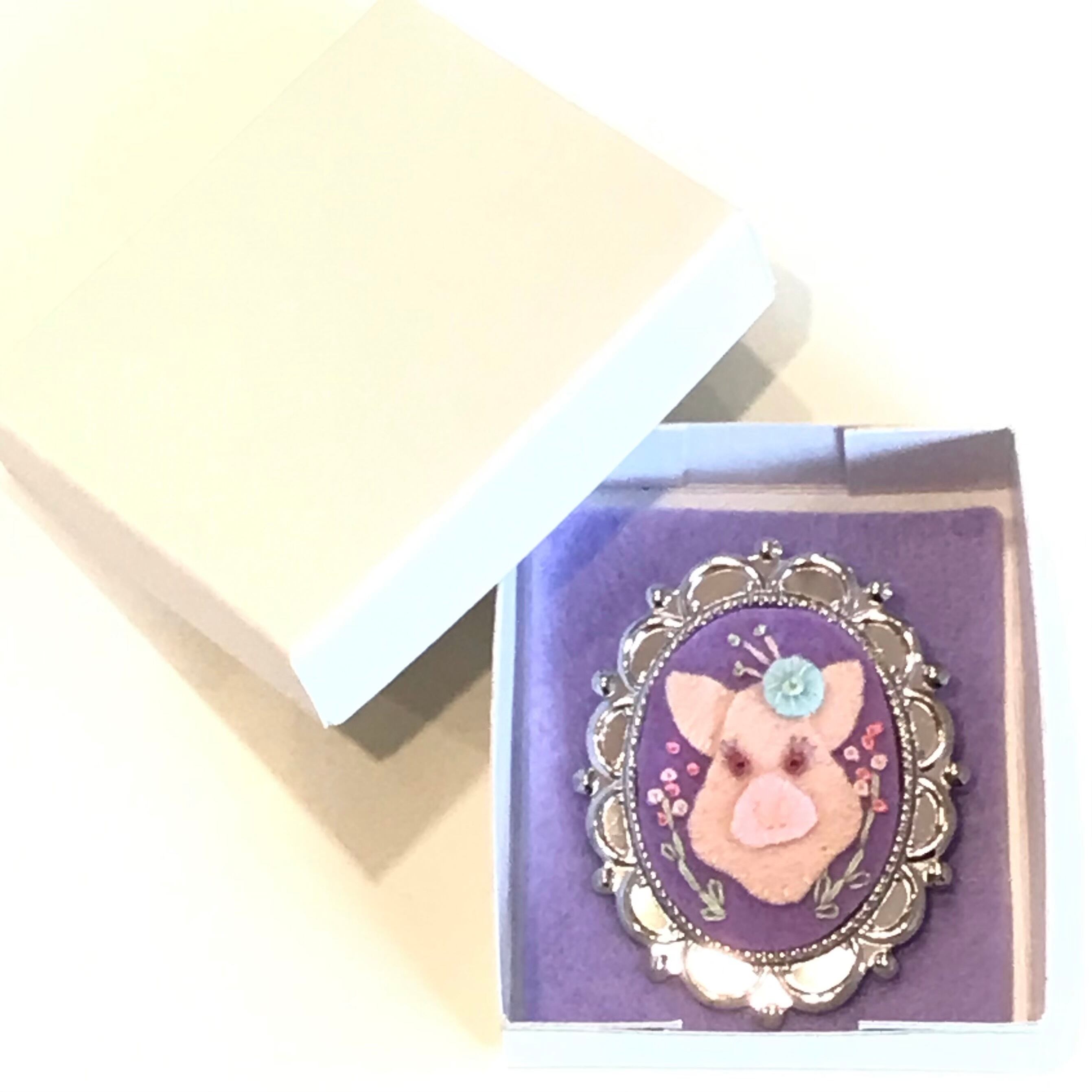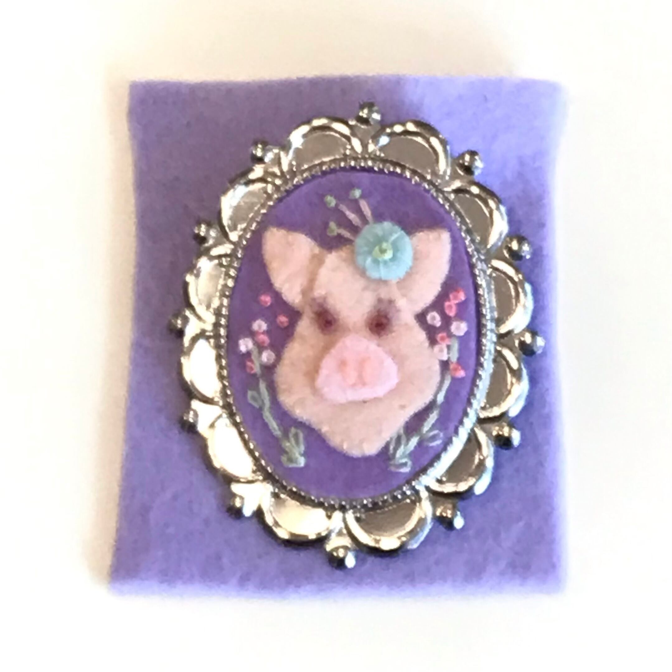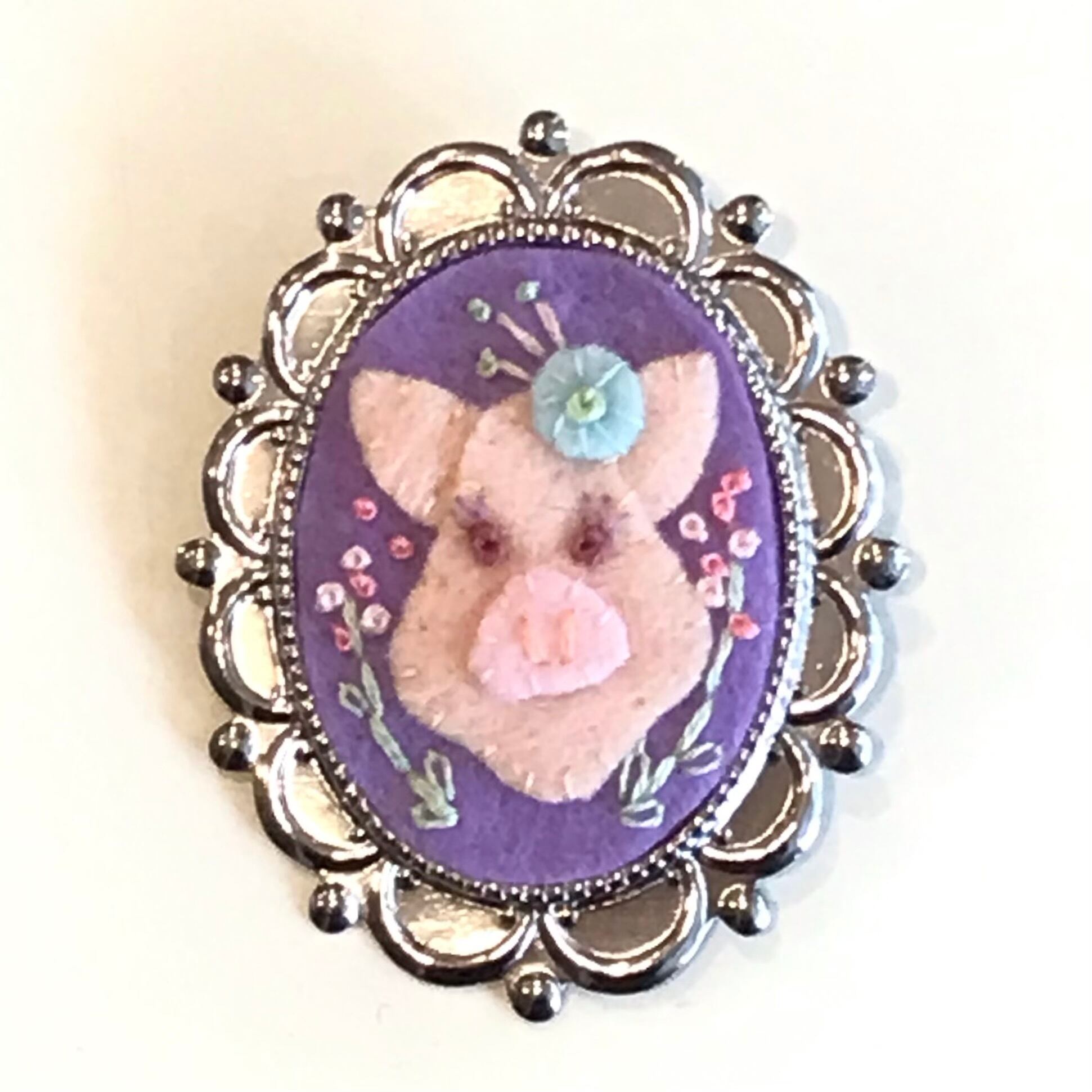 うめだゆみ どうぶつブローチ ぶた パープル