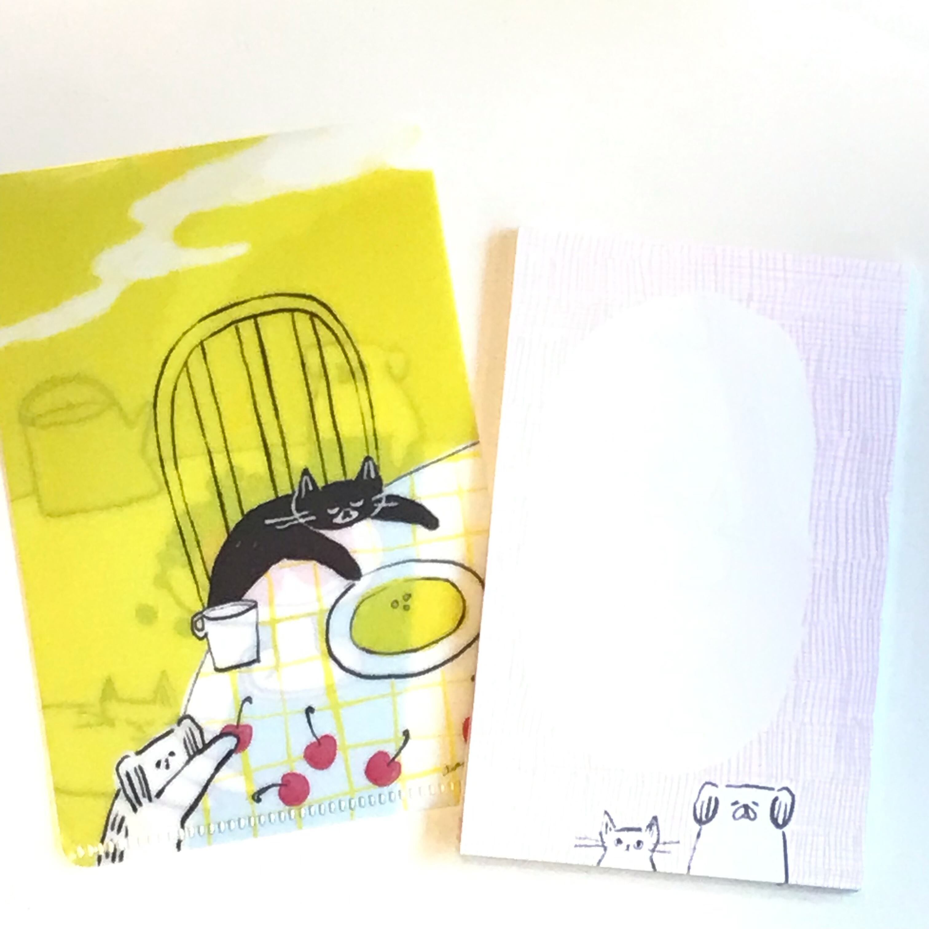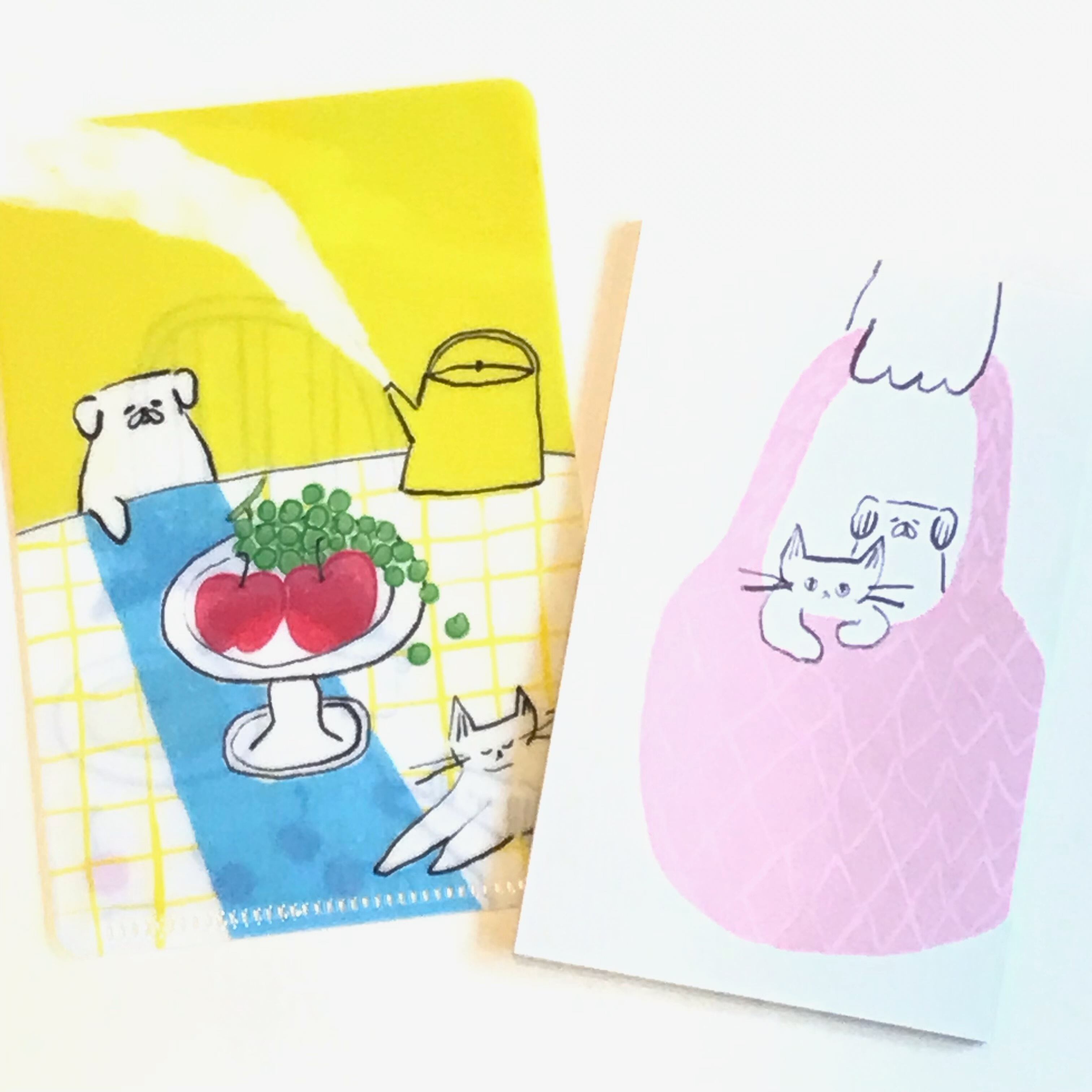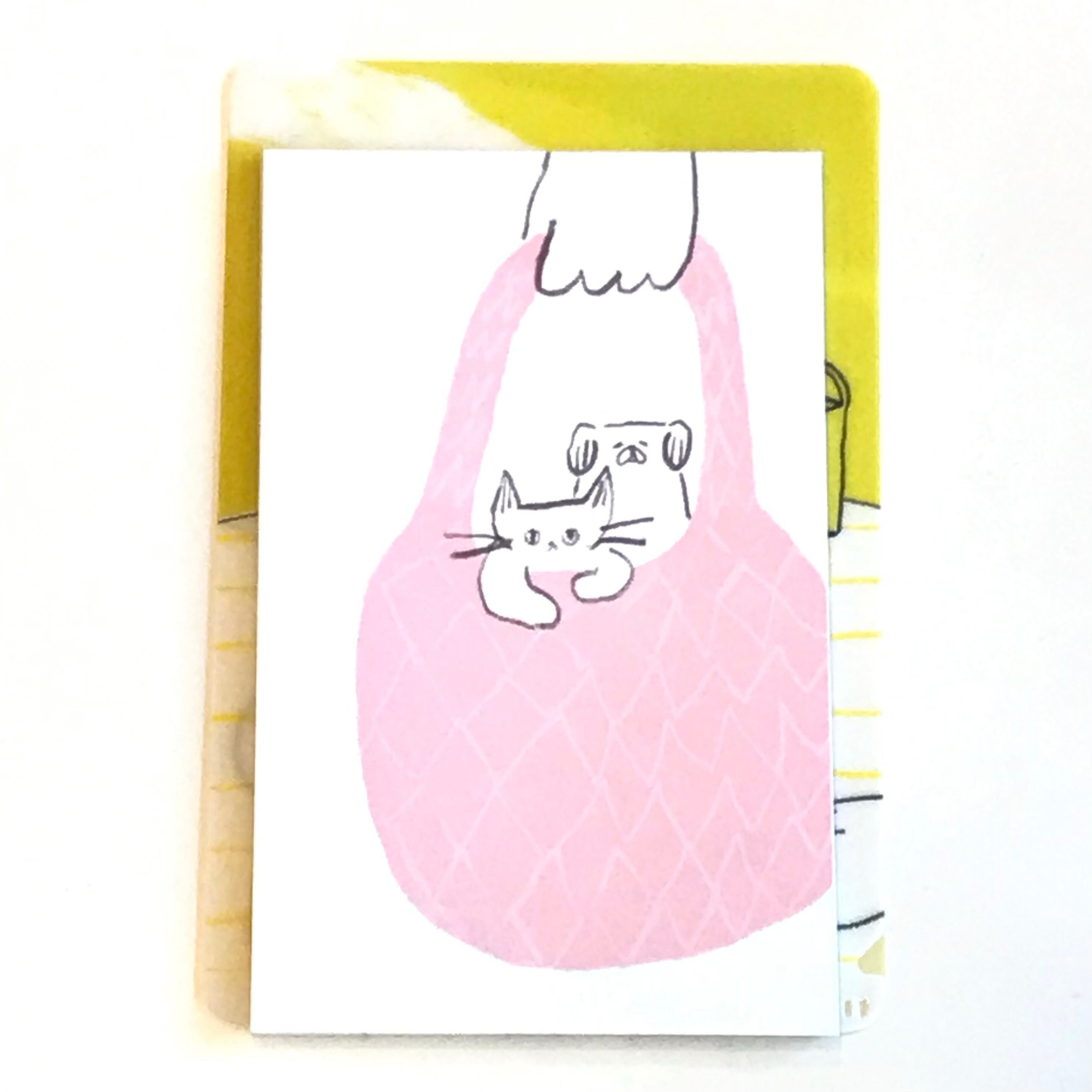 ねこさんとわんこがバッグに入っておでかけする姿がたまらない可愛さです。文字を書き込むスペースがたっぷりあるので、楽しいおでかけの予定やお買い物リストを書き込んだり、スタンプと組み合わせて手帳デコを楽しむのもおすすめです。