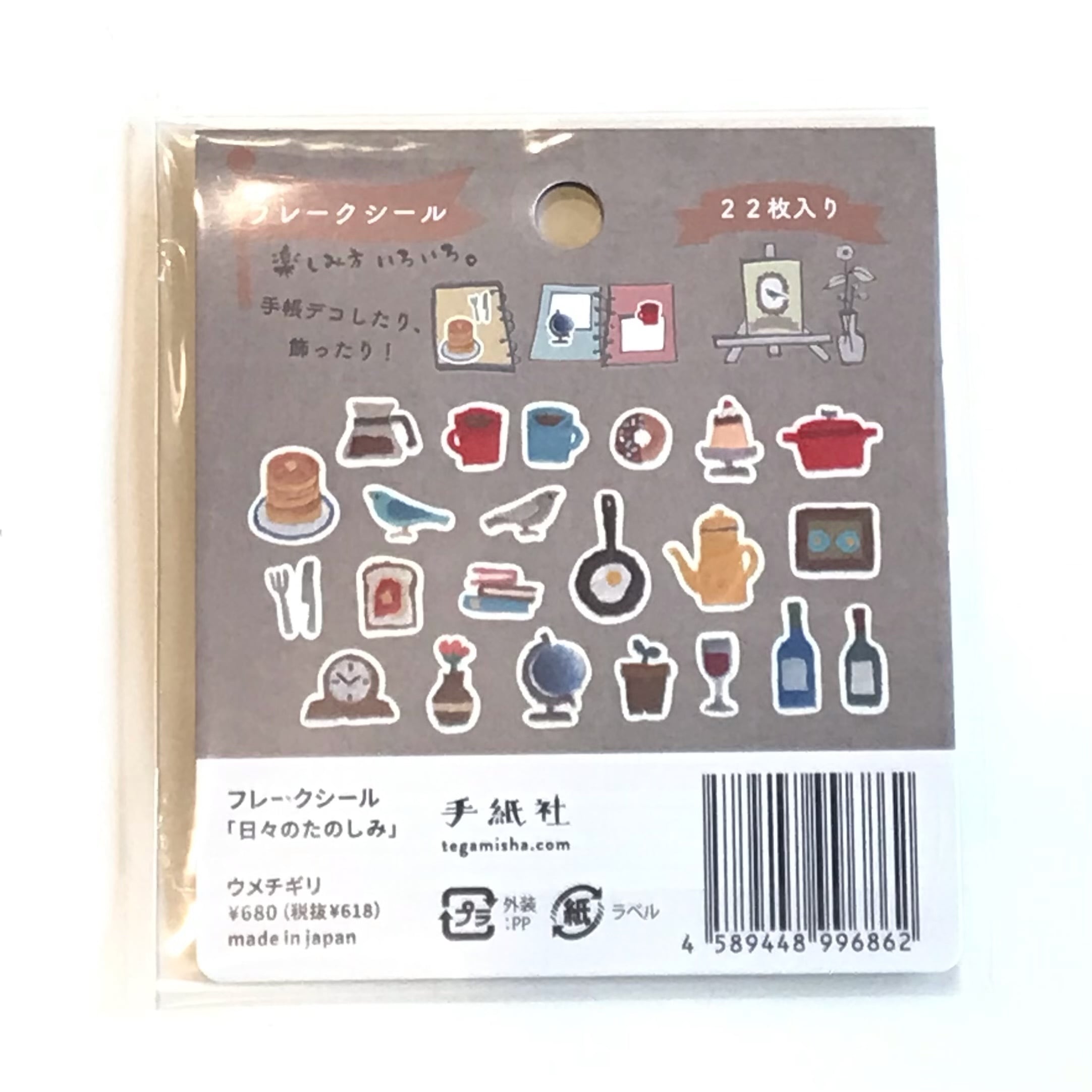山形県在住のちぎり絵作家・ウメチギリさんによる、ホットケーキにプリン、ワインなど「日々のたのしみ」なあれこれがぎゅっと詰まったフレークシールです☆