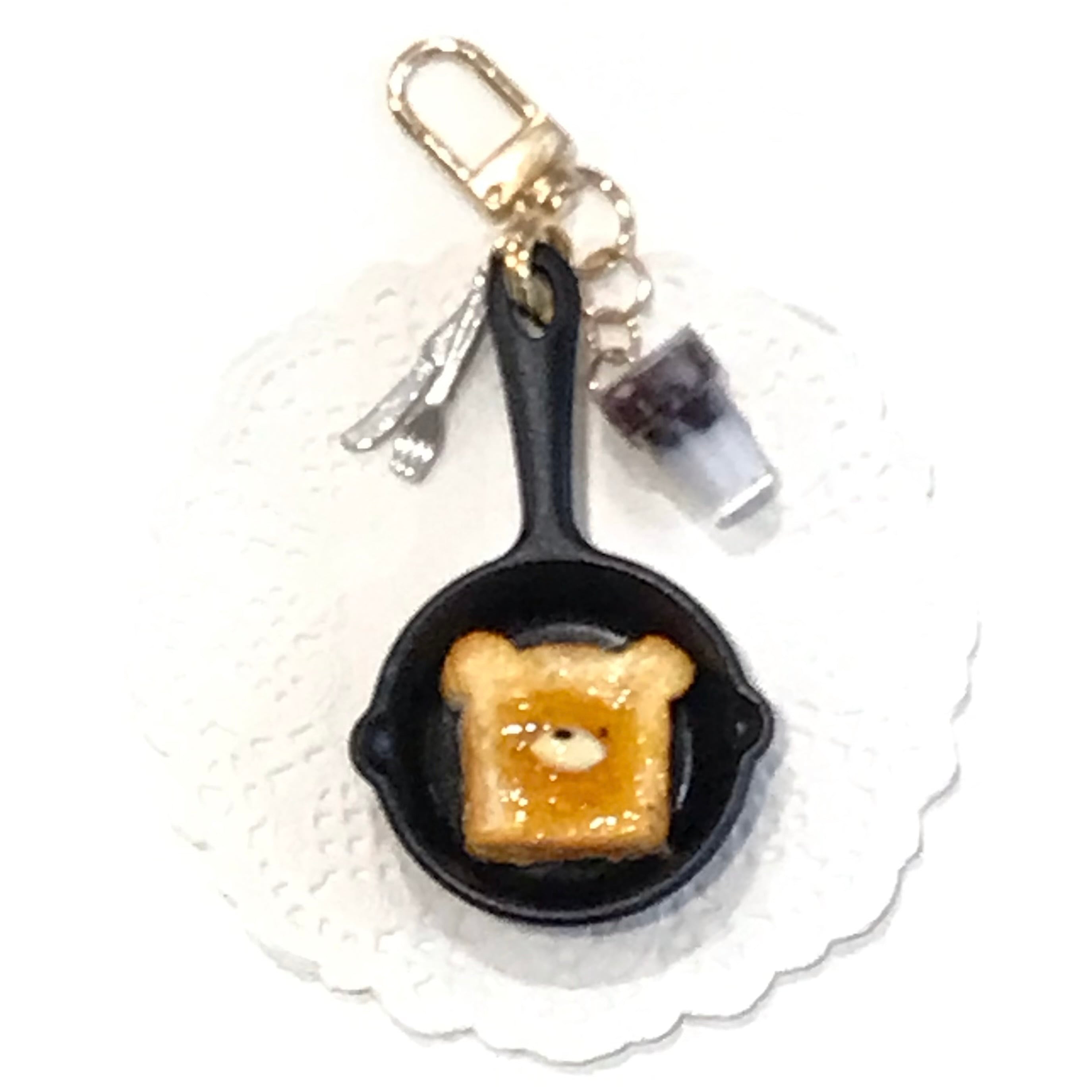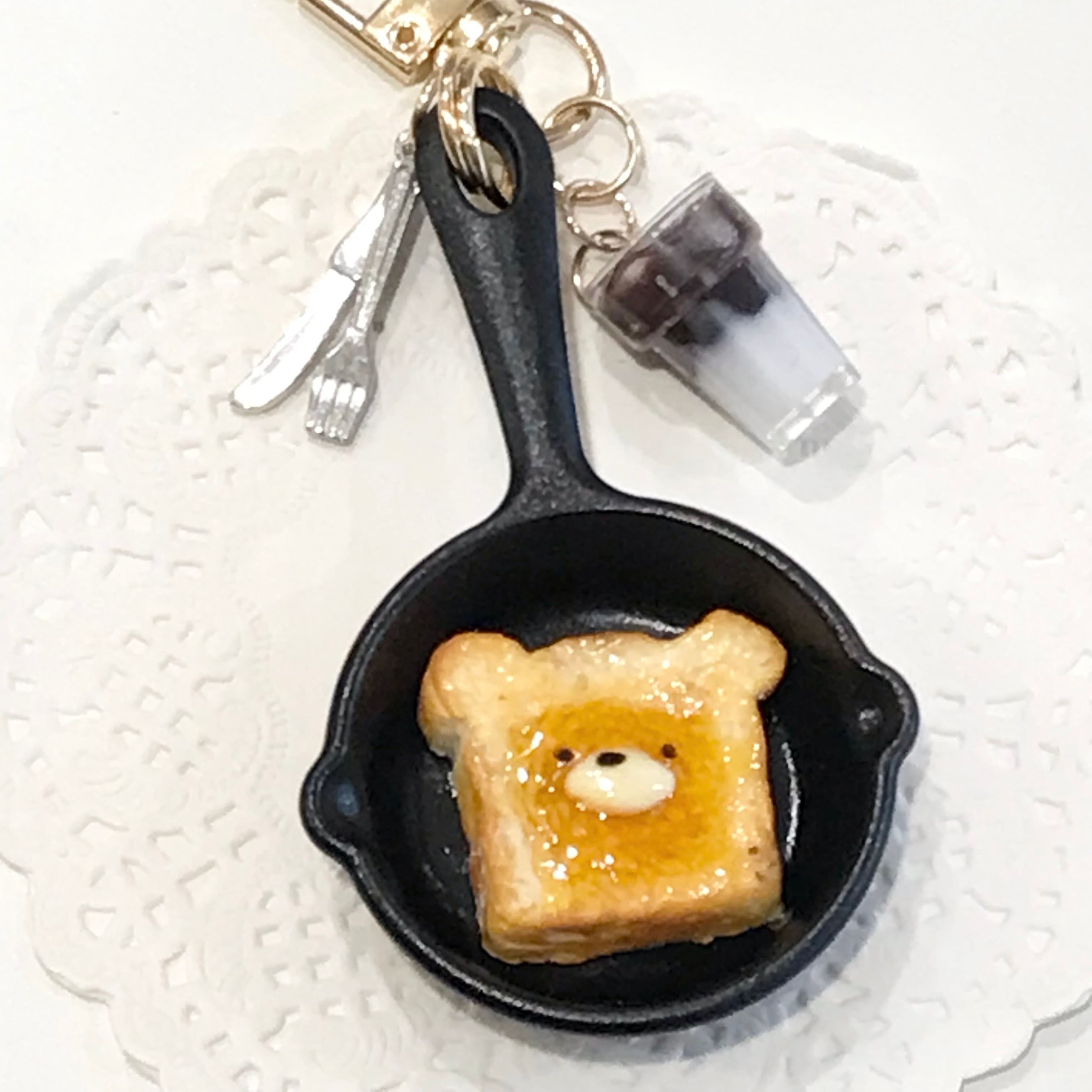 37-SanNana- スキレットキーホルダーL / くまさんバタートースト×コーヒー