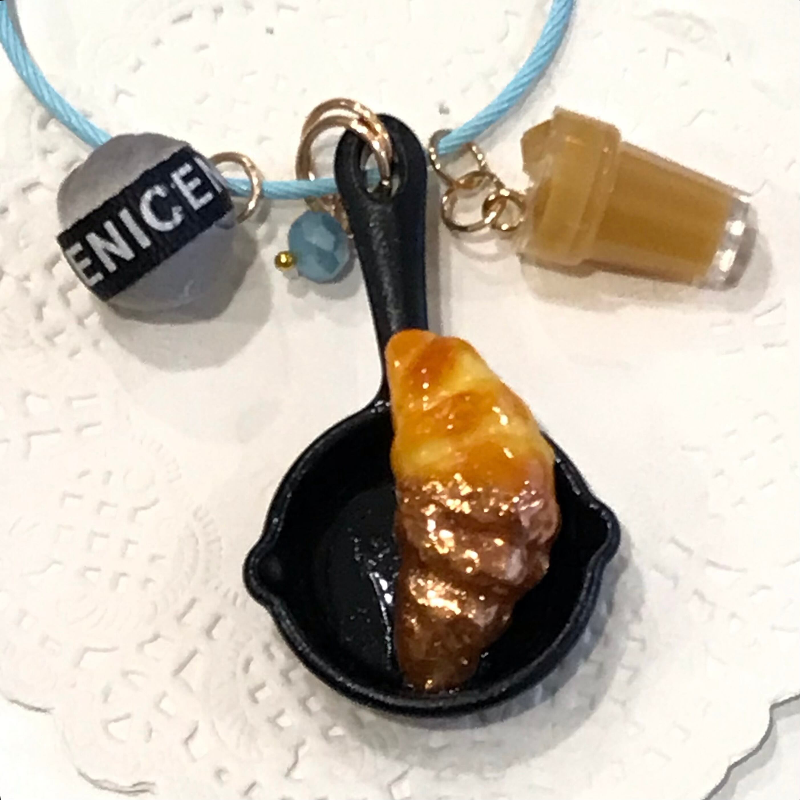 37-SanNana- スキレットキーホルダーS/ クロワッサン×カフェオレ
