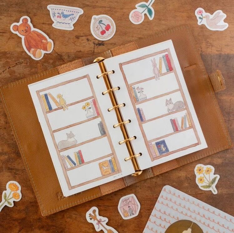 お気に入りのものたちが並んだ、とっておきの本棚。文字を書き込んだり、スタンプやシールで手帳デコを楽しんだりと、使い方を考えるだけでわくわくします。ぜひ、お気に入りの使い方を見つけてください。