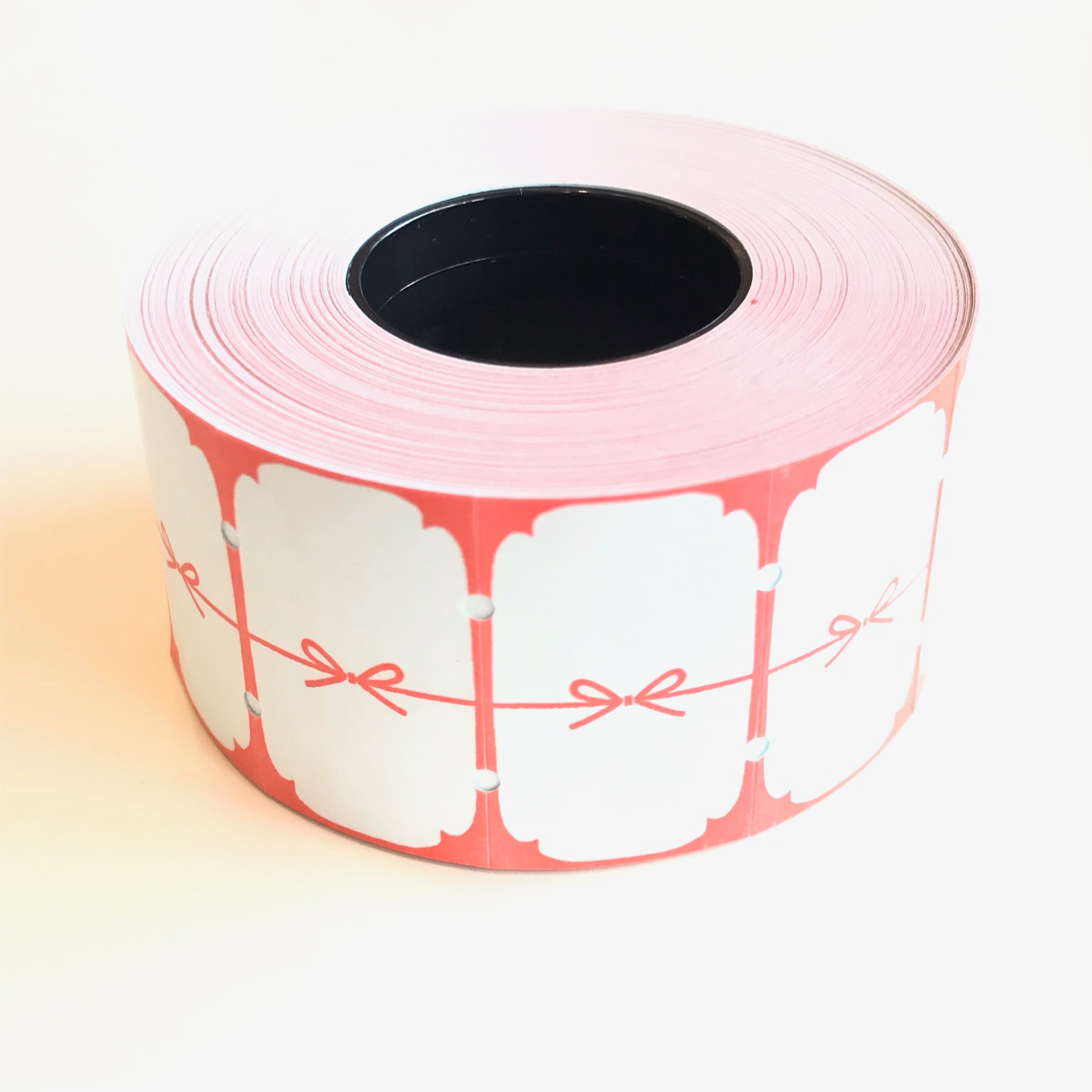 赤い枠に蝶結びの「のし」柄ラベラーロールシールです☆