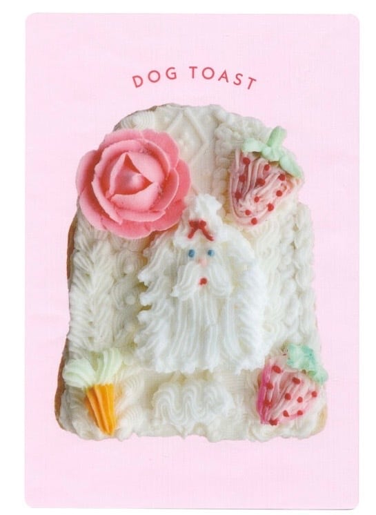 クリームで描かれた犬のトーストや、お砂糖でできた招きうさぎなど、繊細で かわいいモチーフが揃っています。付属の宛名シールを貼れば郵送もできます。