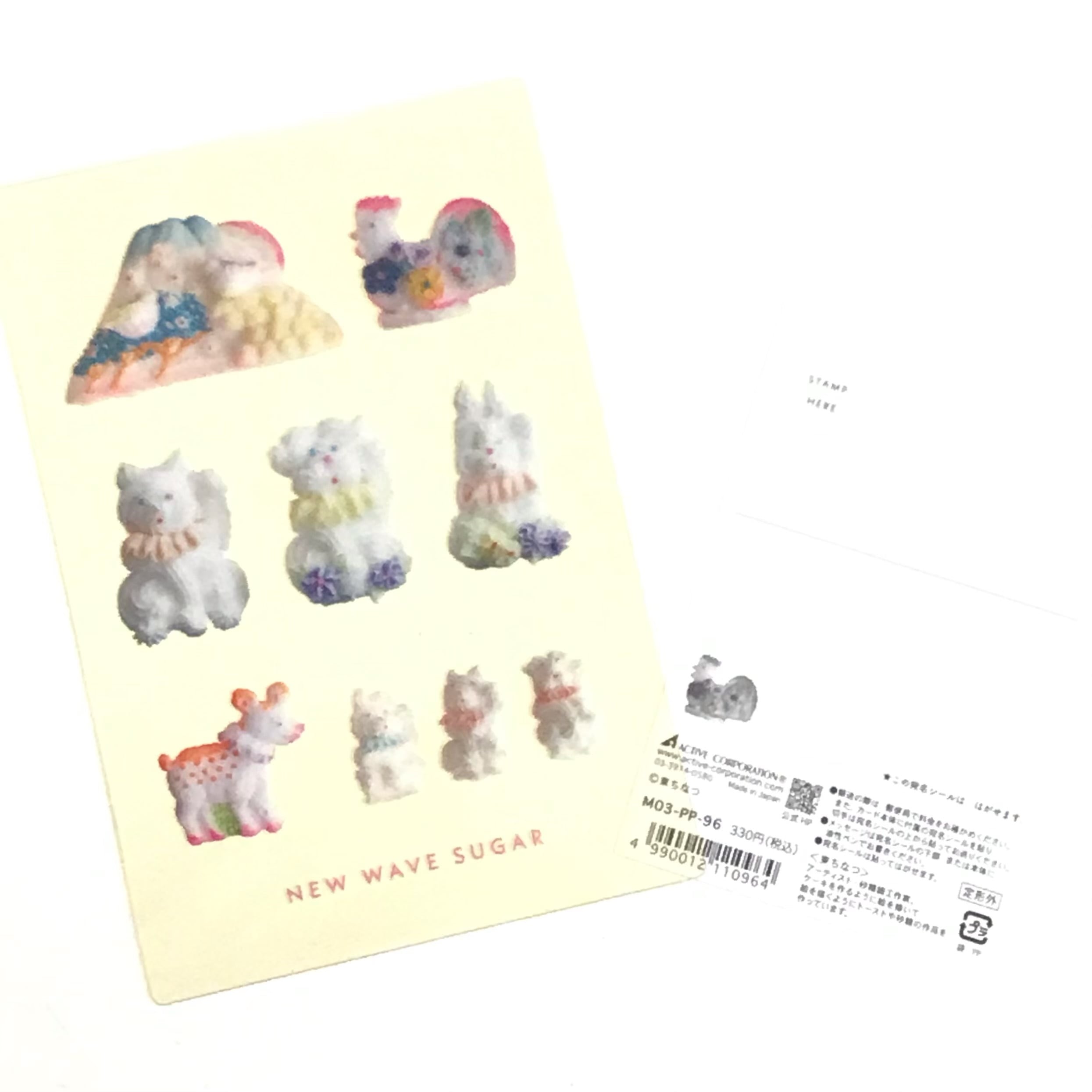 クリームで描かれた犬のトーストや、お砂糖でできた招きうさぎなど、繊細で かわいいモチーフが揃っています。付属の宛名シールを貼れば郵送もできます。