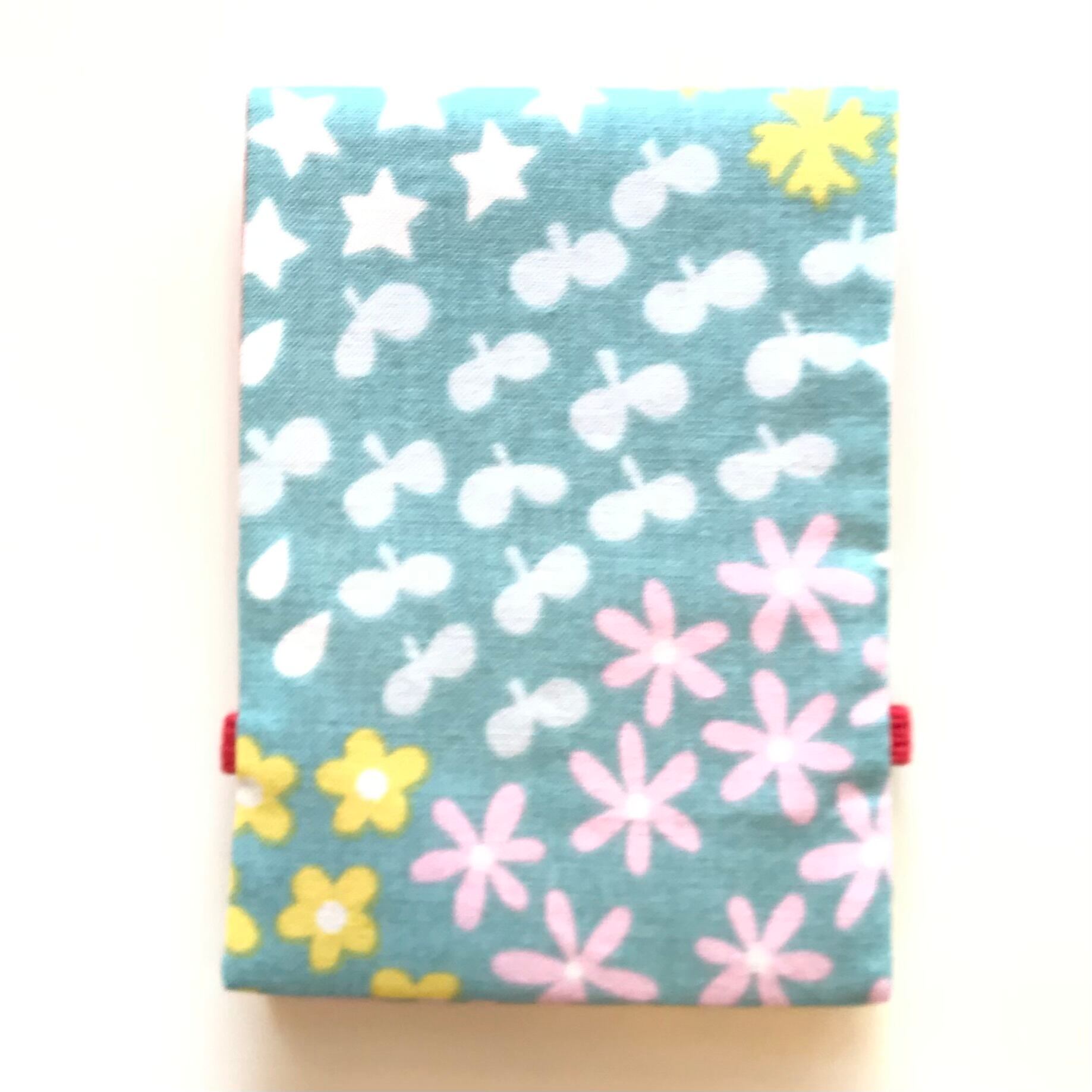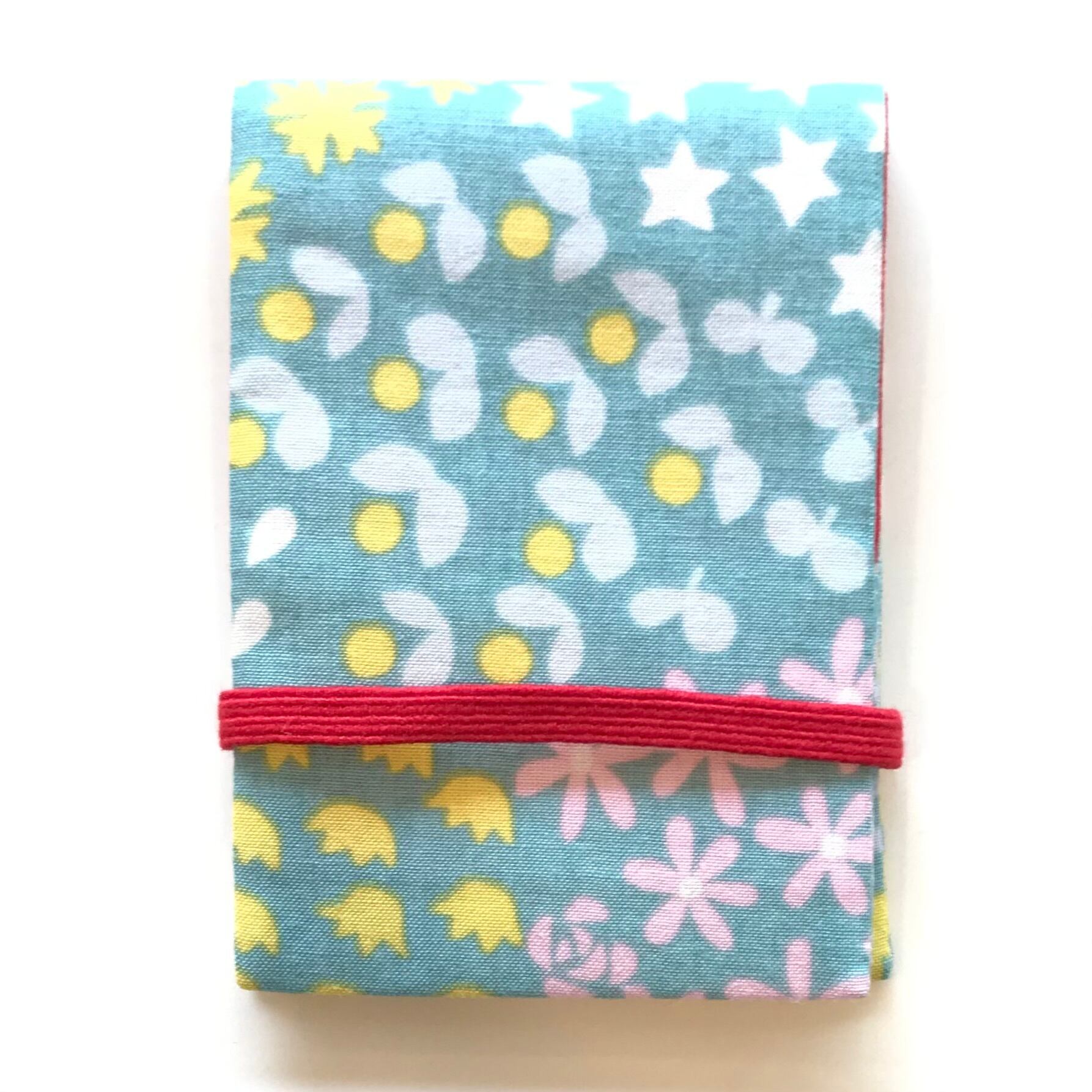 たくさん入れても、ゴムバンド付きなのでしっかりホールドできます。裏地はゴムバンドと同じ色です。