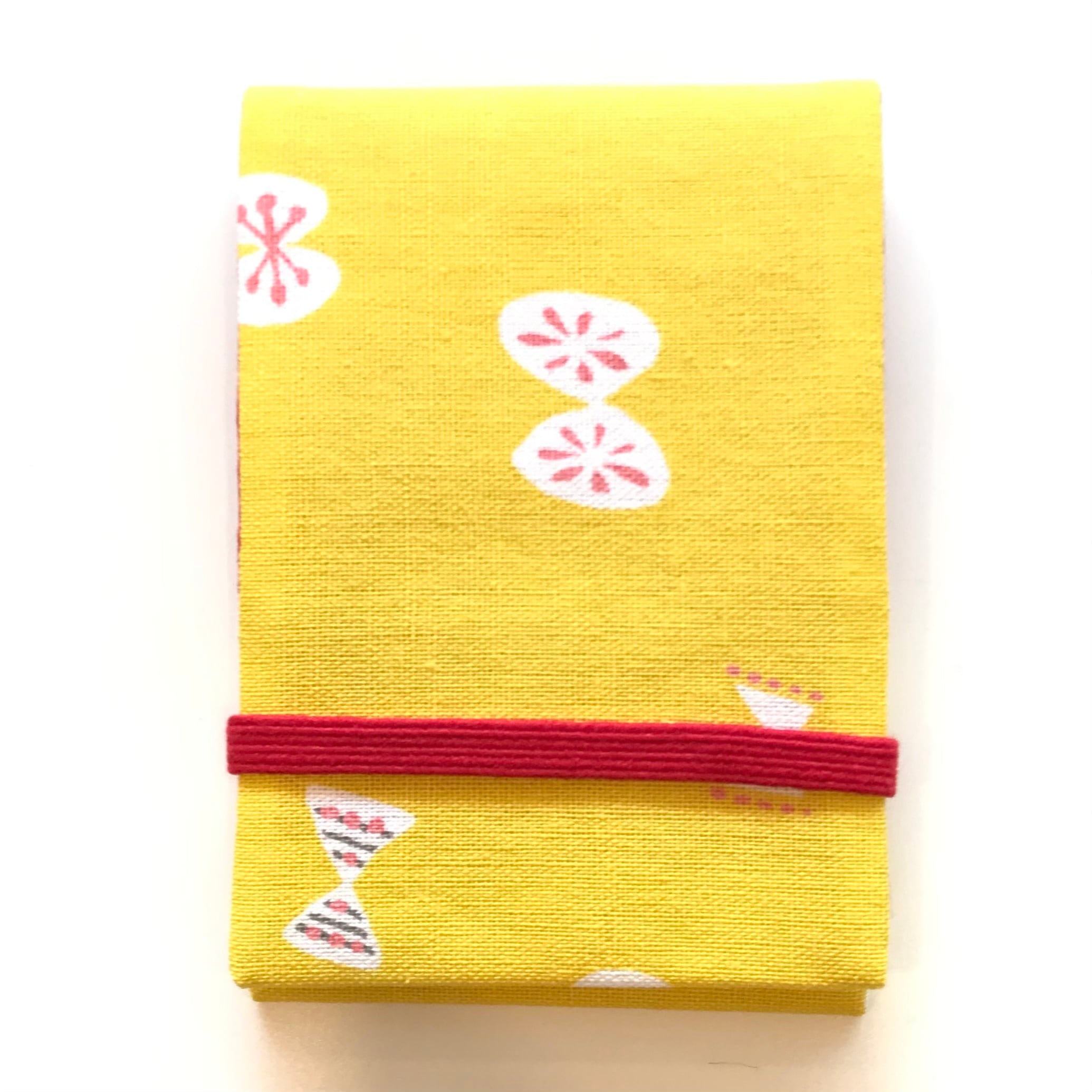 たくさん入れても、ゴムバンド付きなのでしっかりホールドできます。裏地はゴムバンドと同じ色です。