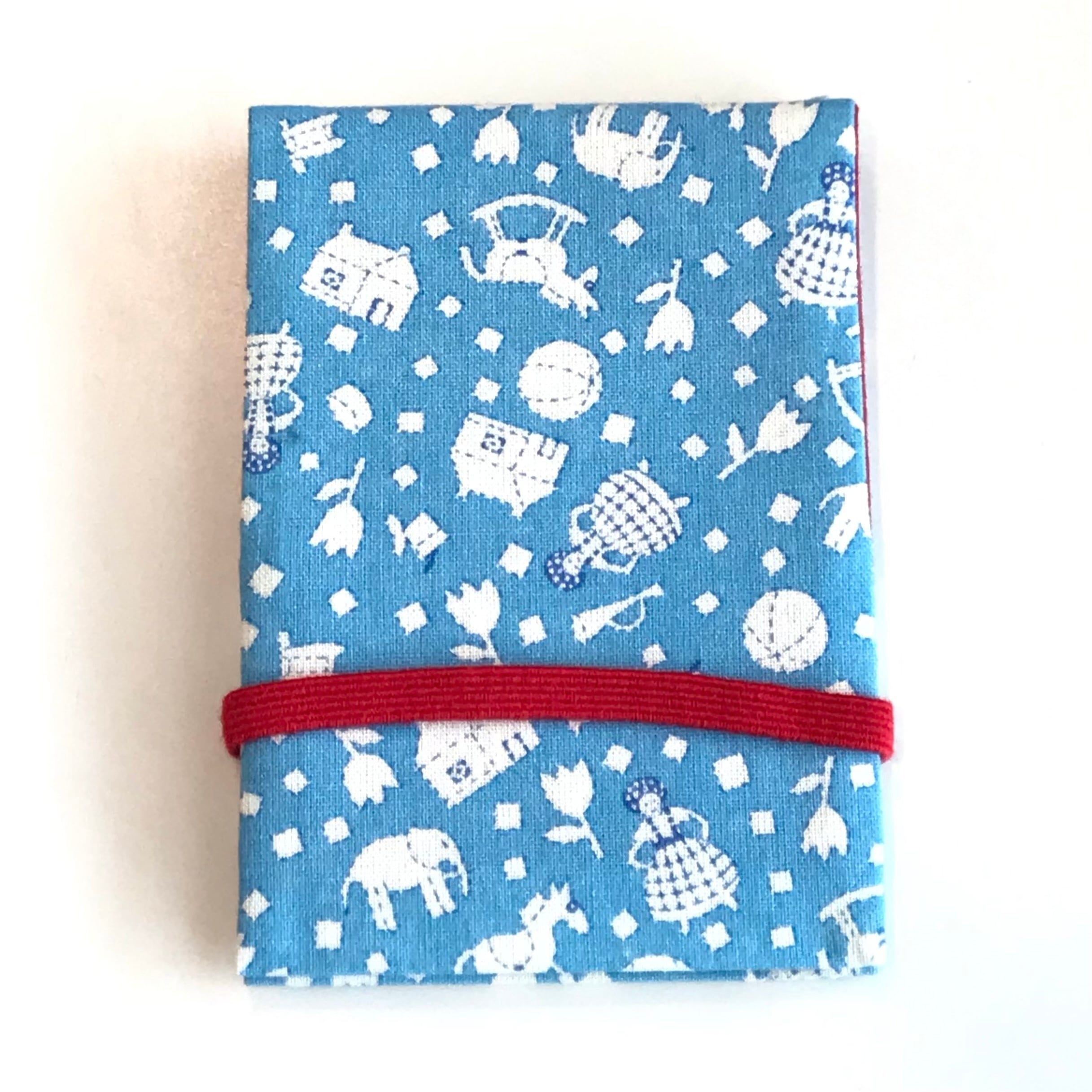 たくさん入れても、ゴムバンド付きなのでしっかりホールドできます。裏地はゴムバンドと同じ色です。