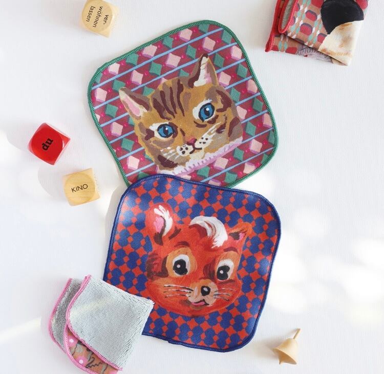 フランスのイラストレーター・Nathalie Leteのメガネやスマホも拭けるミニハンドタオルです。