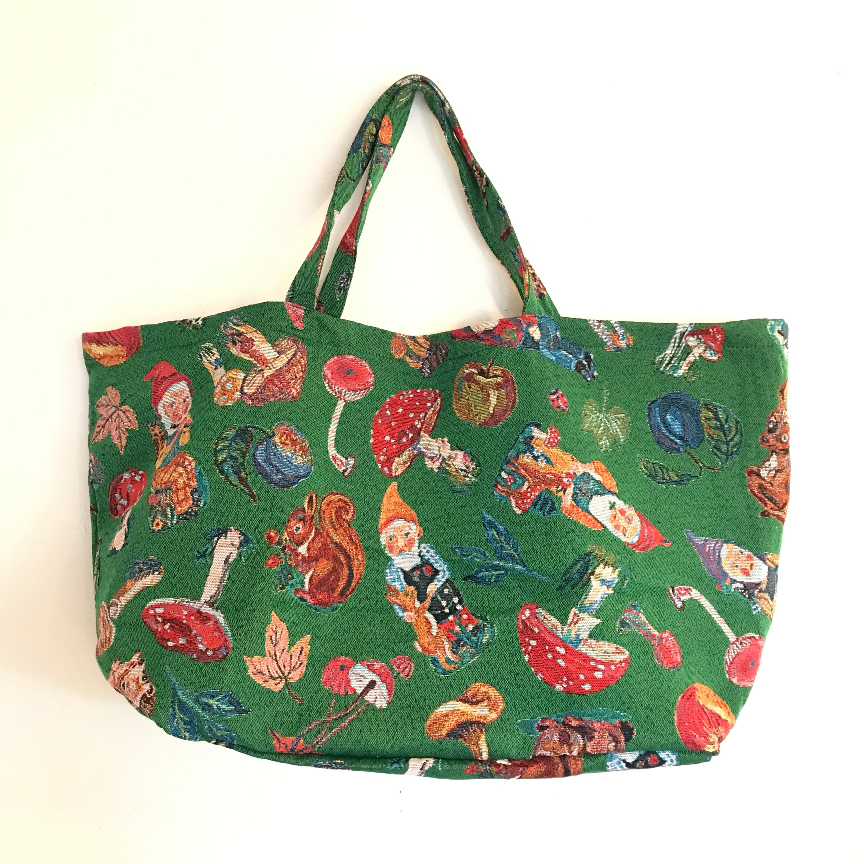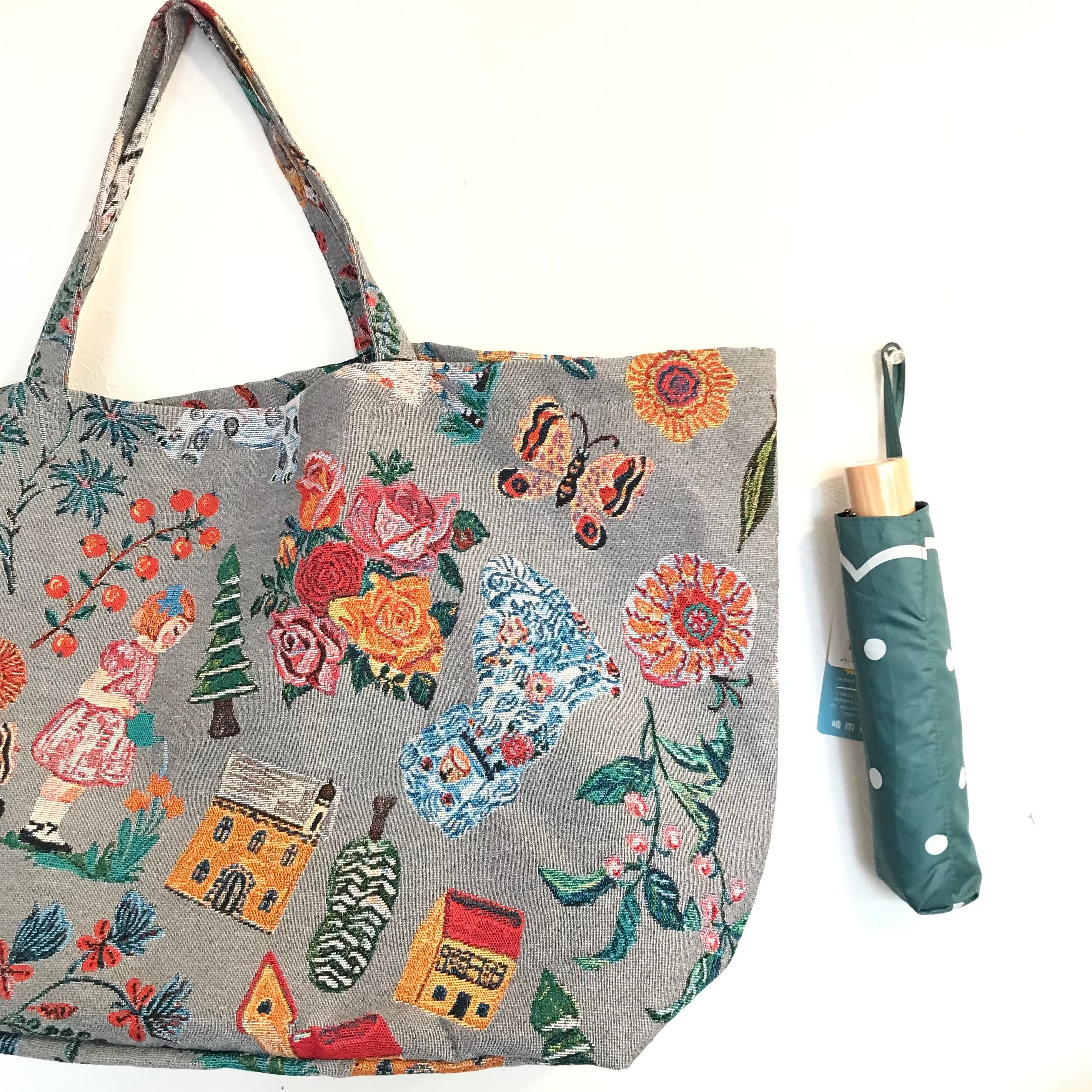 ゴブラン織りのマーケットバッグは、お買い物だけでなく、2、3日の旅行にもおすすめのたっぷりサイズのバッグです。