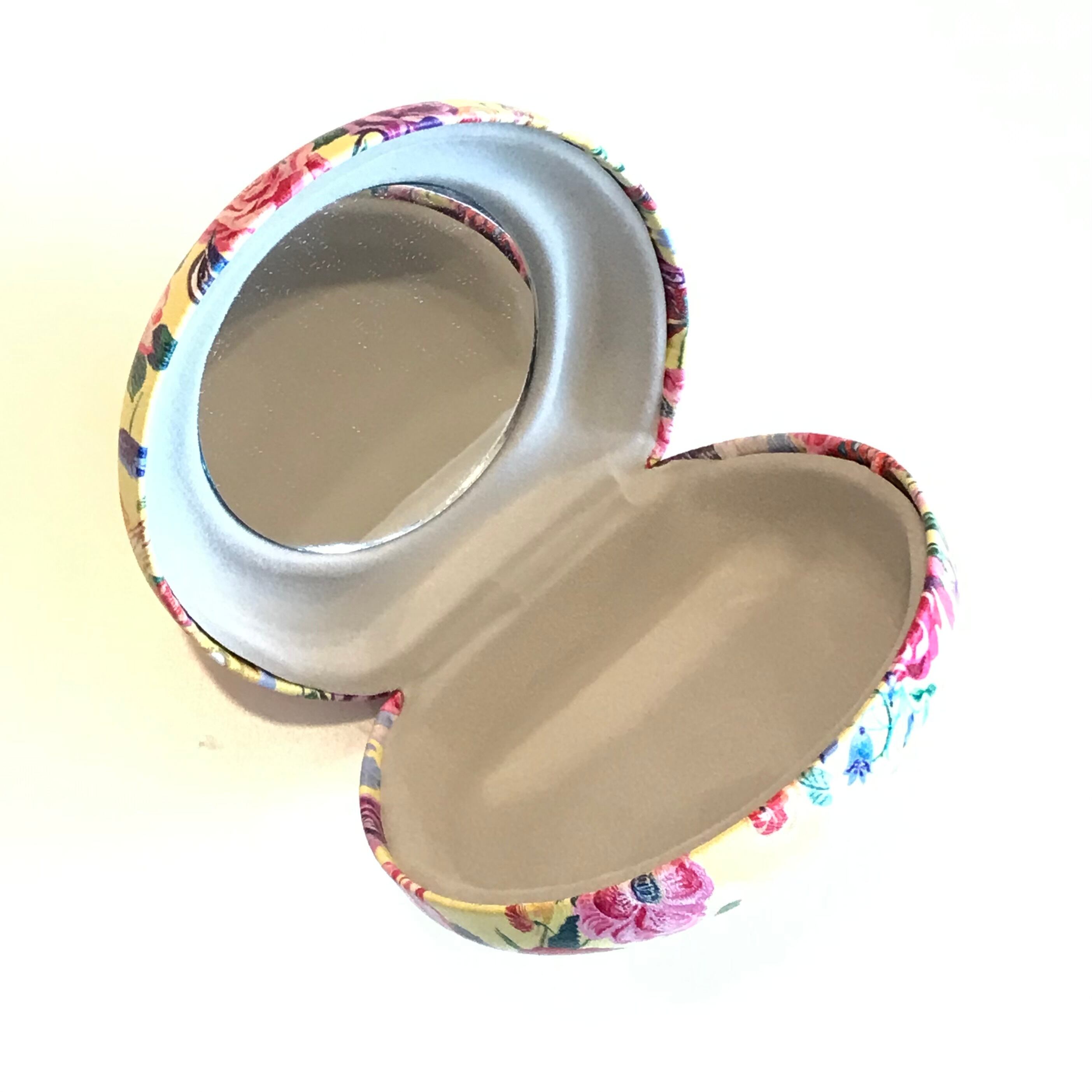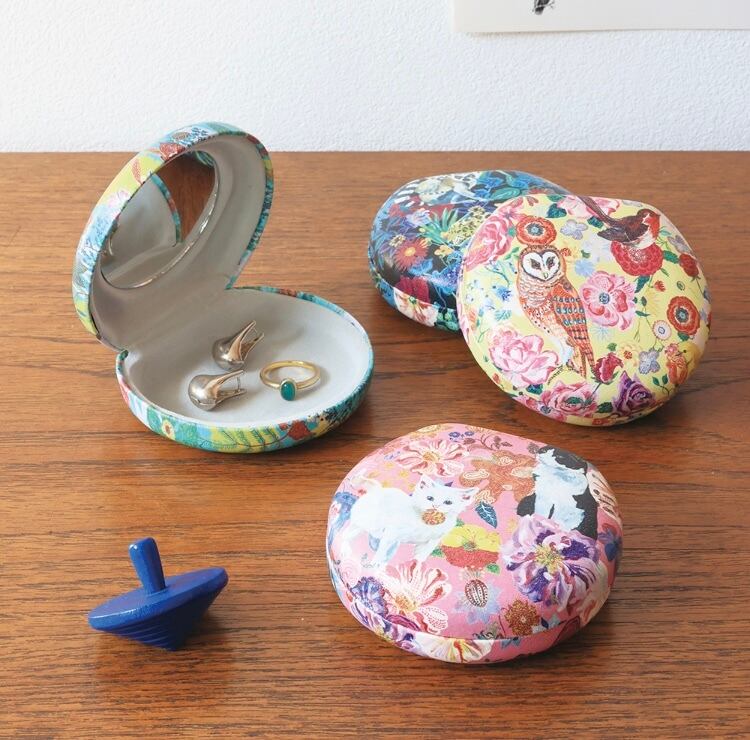 開くと片面に等倍ミラー付き。アクセサリーを入れて持ち運ぶのに便利です。